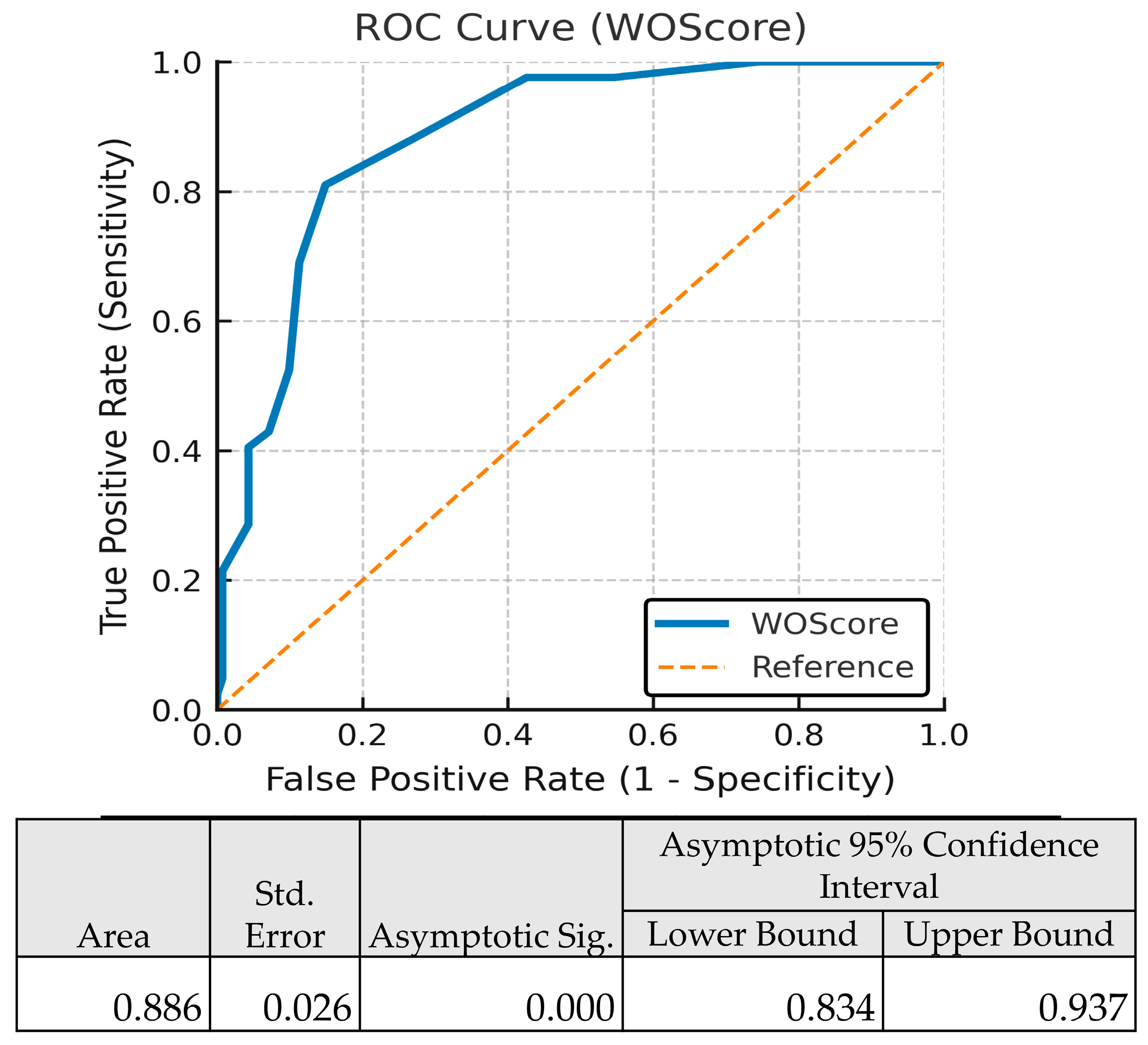 3.5.2. Comparison of WOS by Outcome Groups in the Validation Cohort