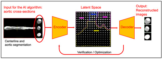 Artificial intelligence (AI) methods are increasingly utilized to enhance imaging-based assessments in cardiovascular surgery, facilitating advanced image analysis, precise risk prediction, and personalized treatment planning. In the field of aortic surgery specifically, AI-driven tools have shown promise in tasks such as automated measurement of aortic dimensions, detection of endoleaks, and prediction of clinical outcomes following dissection or aneurysm repair [1,2]. However, many existing AI approaches rely on supervised learning techniques, which require extensive, manually annotated datasets—datasets that are challenging to obtain for rare or anatomically complex conditions such as aortic dissection. Unsupervised learning approaches, particularly variational autoencoders (VAEs), provide a powerful alternative by autonomously extracting latent imaging features. VAEs encode images into structured latent representations, enabling scalable, consistent, and robust analyses across diverse clinical data [3,4,5].