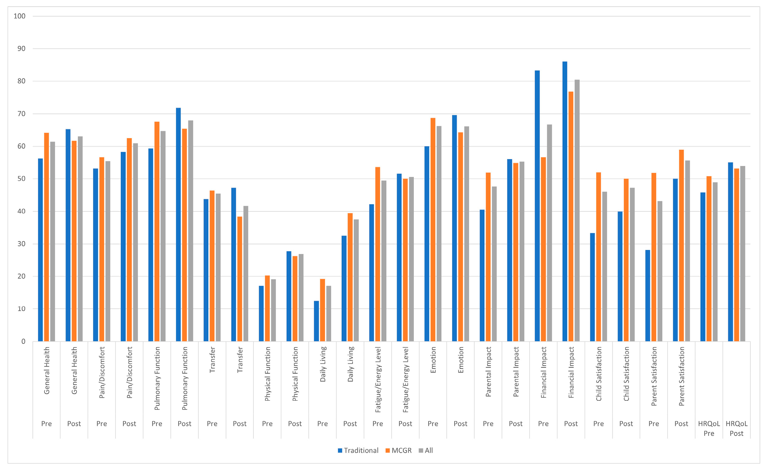 - DiFazio, R.L.; Miller, P.E.; Vessey, J.A.; Snyder, B.D. Health-related quality of life and care giver burden following spinal fusion in children with cerebral palsy. Spine 2017, 42, E733–E739. [Google Scholar] [CrossRef]