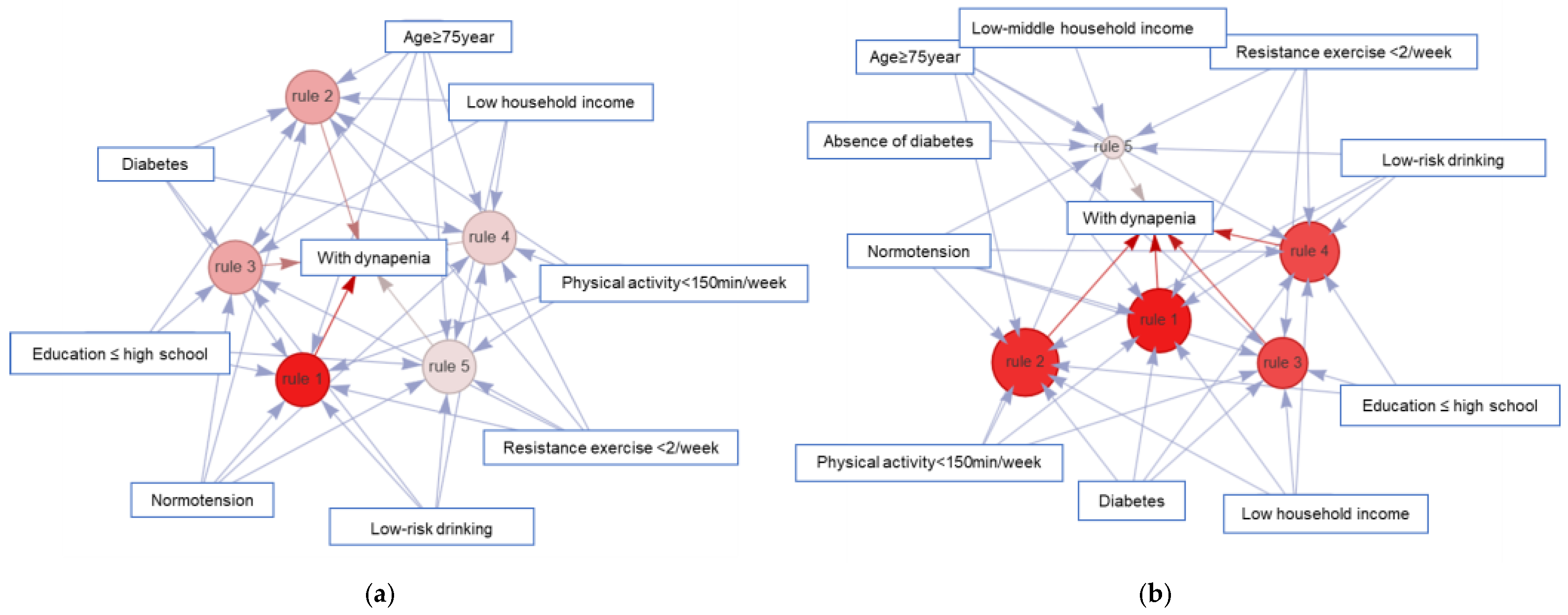 3.3. Association Rule Mining for Dynapenia Risk Patterns