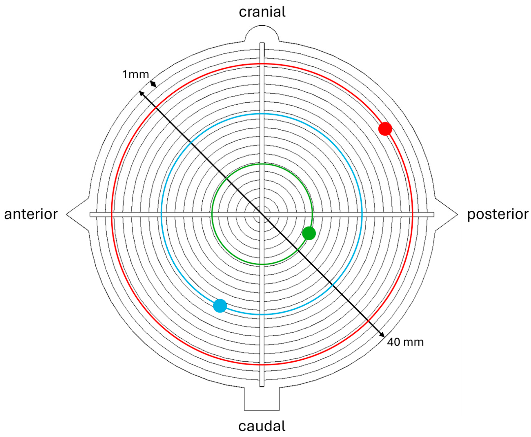 | Entry point (mm) 1 | 2.5 (1.8, 3.8) | 4.3 (2.9, 5.6) | p = 0.218 [−3.14, 0.74] |