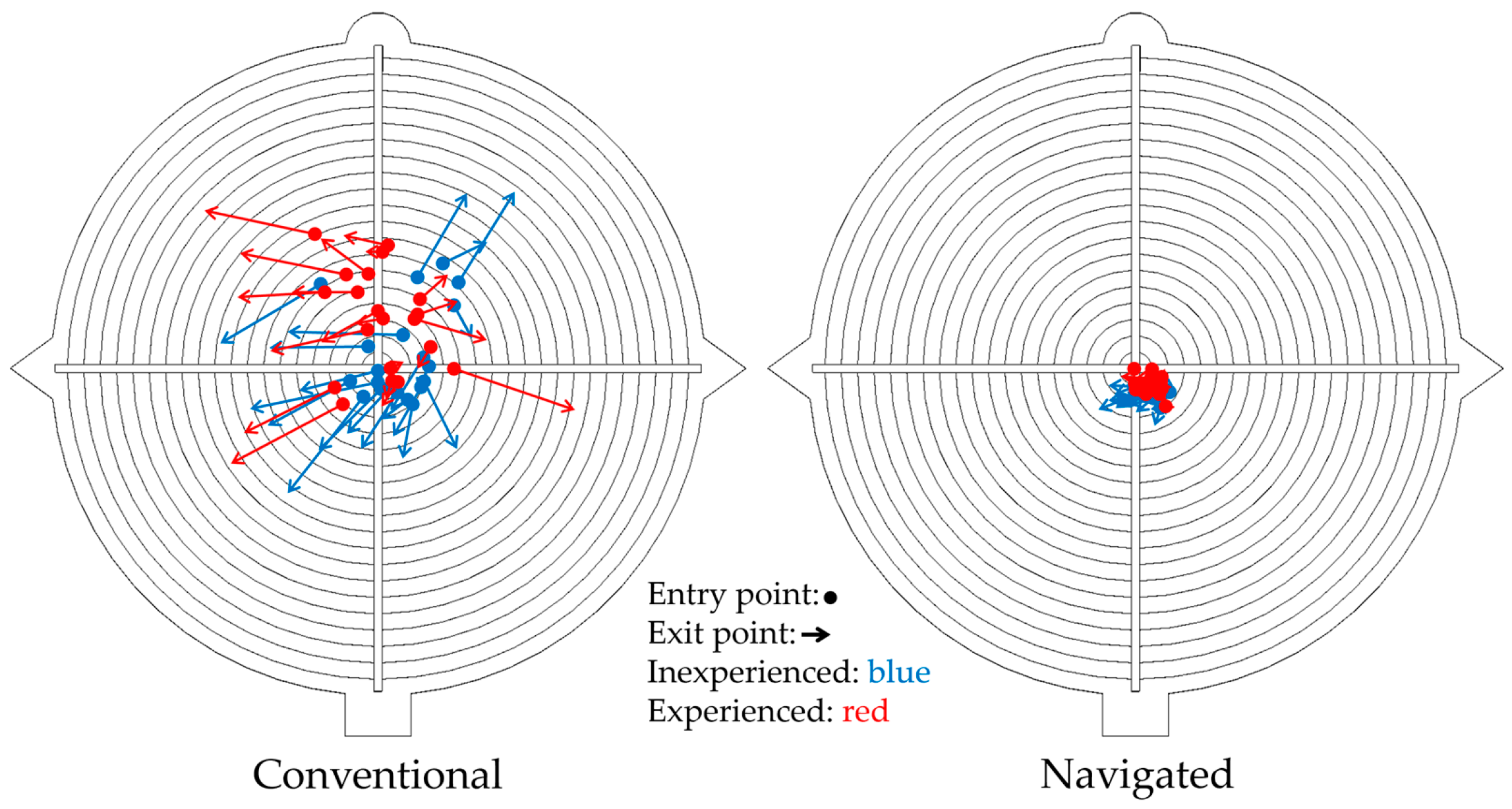 3.2.3. Inexperienced Navigated vs. Experienced Conventional (IN vs. EC)
