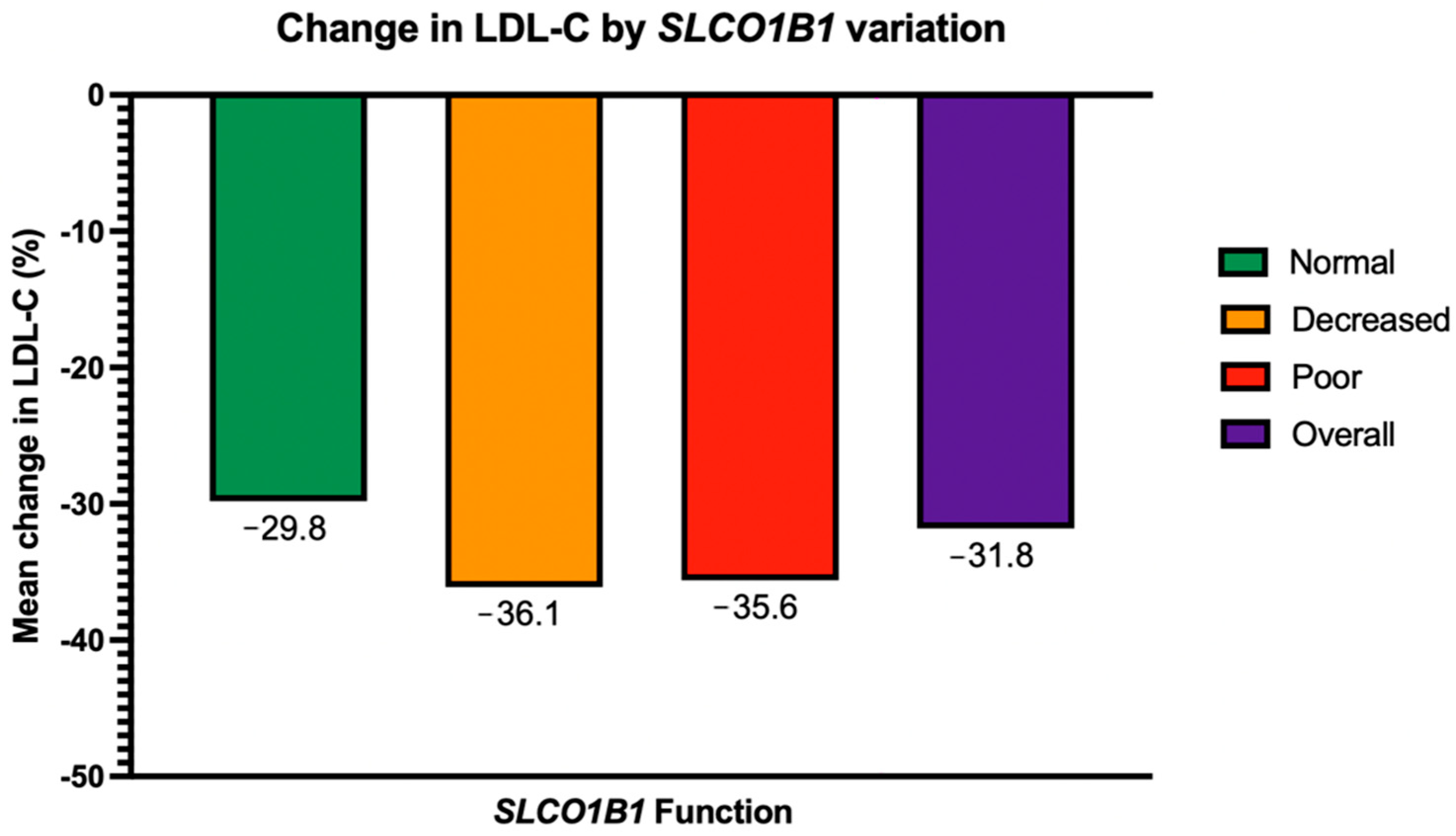 | SLCO1B1 Function | Mean Change in LDL-C (%) | ||||
