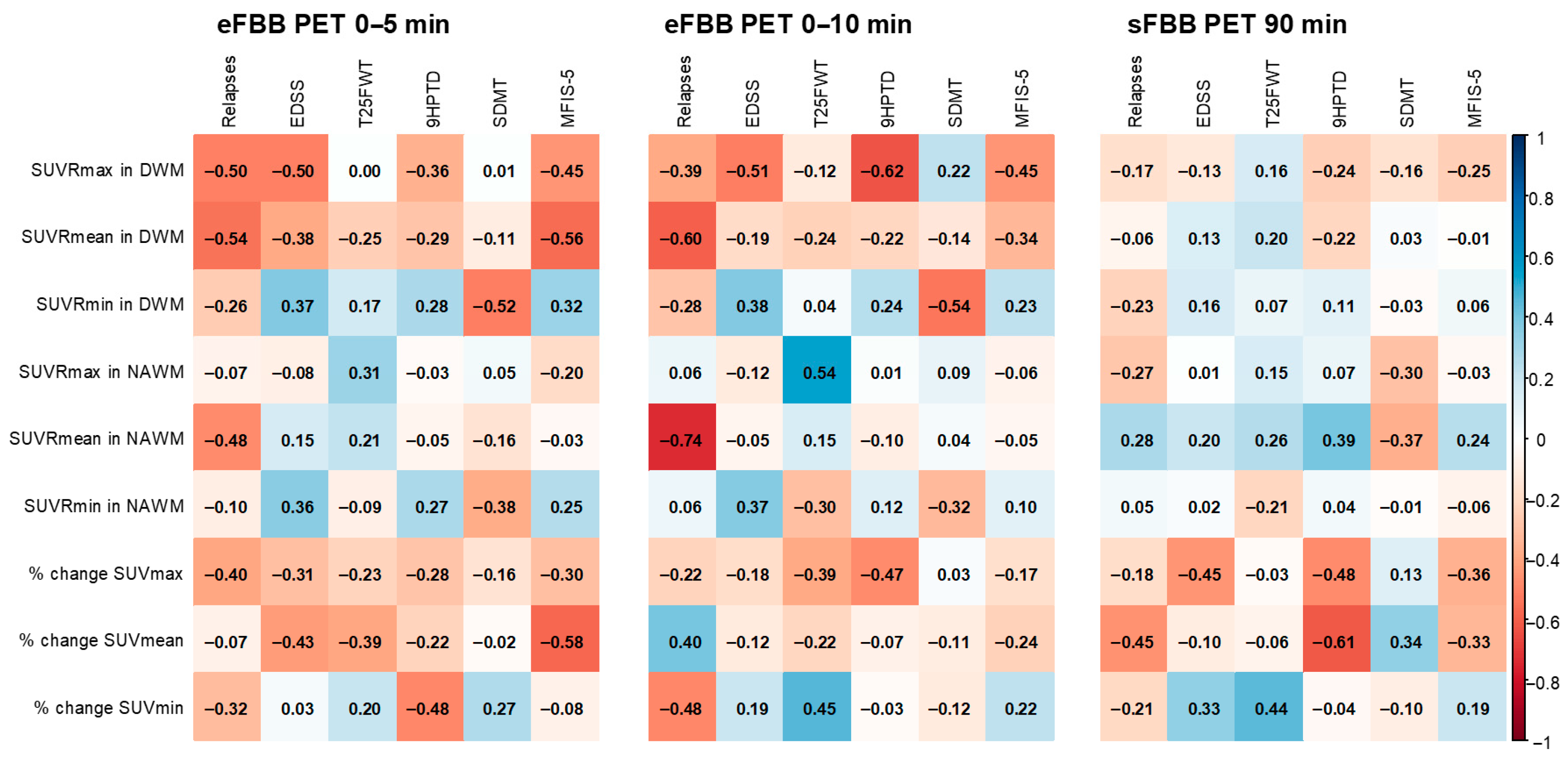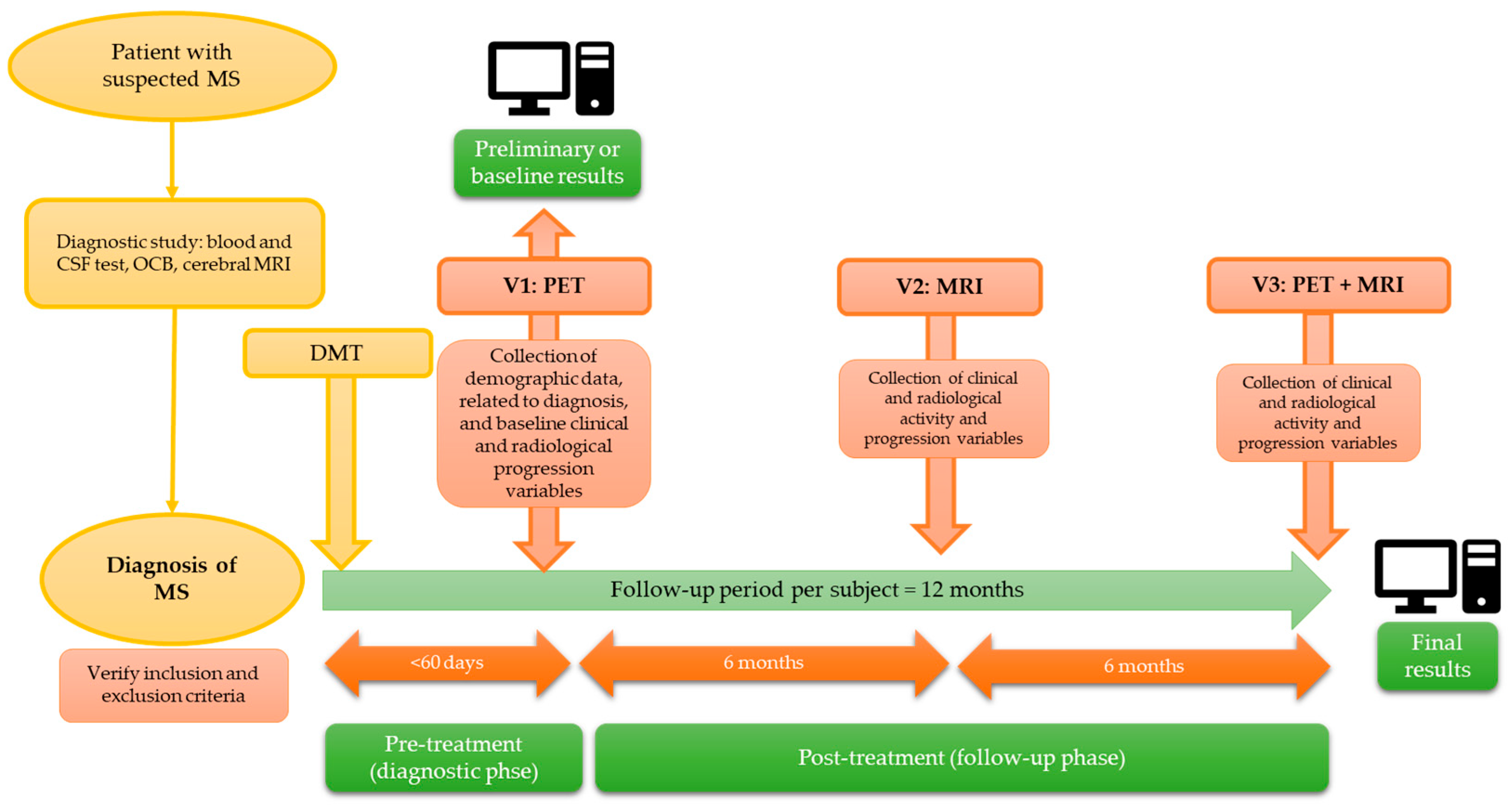 - Matías-Guiu, J.A.; Cabrera-Martín, M.N.; Matías-Guiu, J.; Oreja-Guevara, C.; Riola-Parada, C.; Moreno-Ramos, T.; Arrazola, J.; Carreras, J.L. Amyloid PET Imaging in Multiple Sclerosis: An 18F-Florbetaben Study. BMC Neurol. 2015, 15, 243. [Google Scholar] [CrossRef] [PubMed]