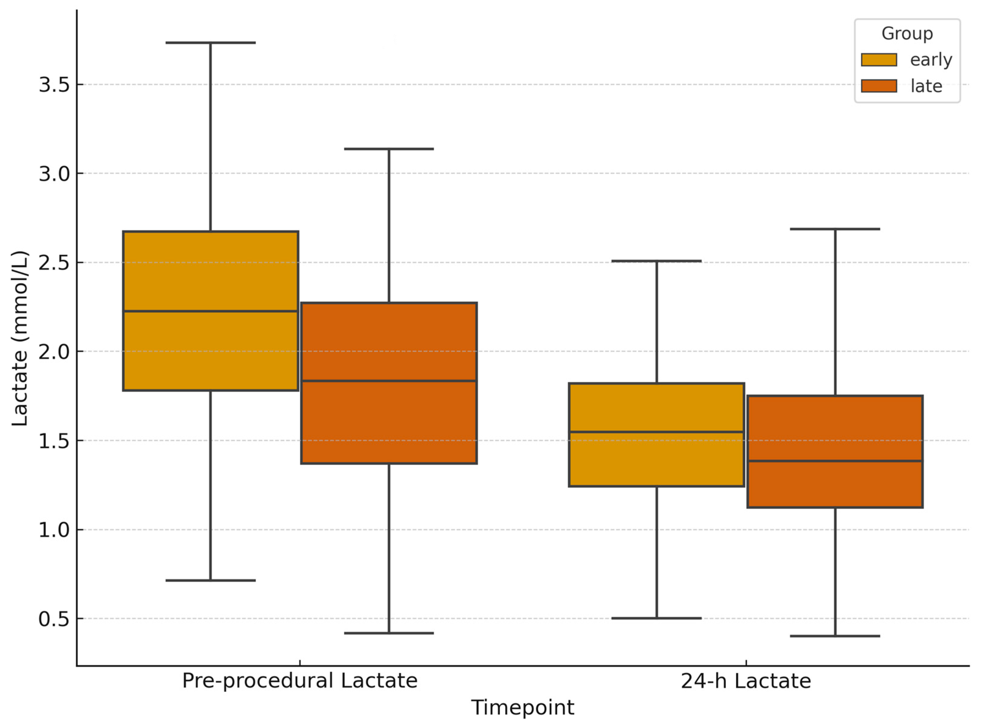 3.2. Laboratory and Hemodynamic Outcomes