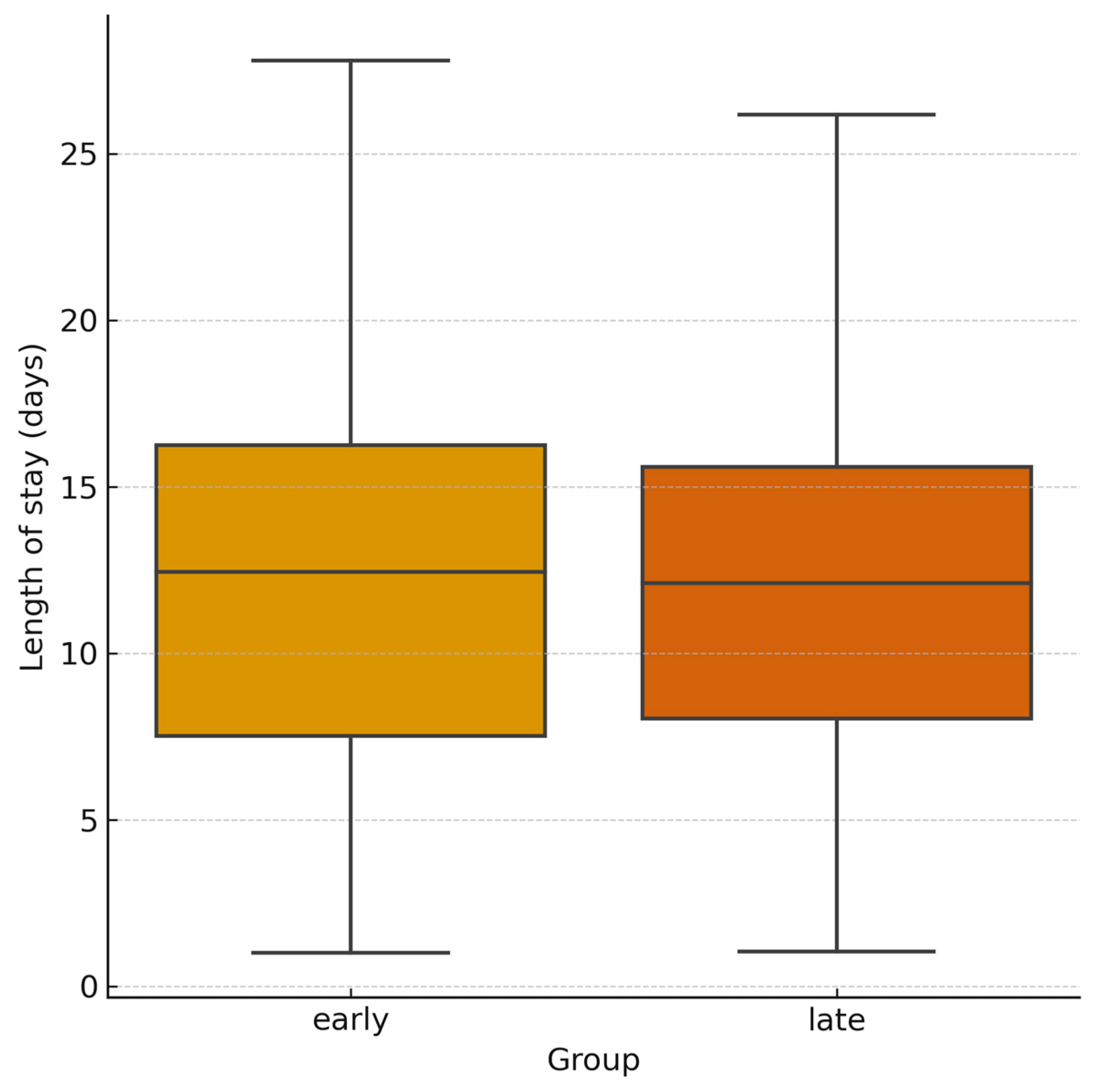 | Length of hospital stay (days, median [IQR]) | 12 [6–25] | 11 [6–20] | 0.89 | −2.5 to 3.5 |