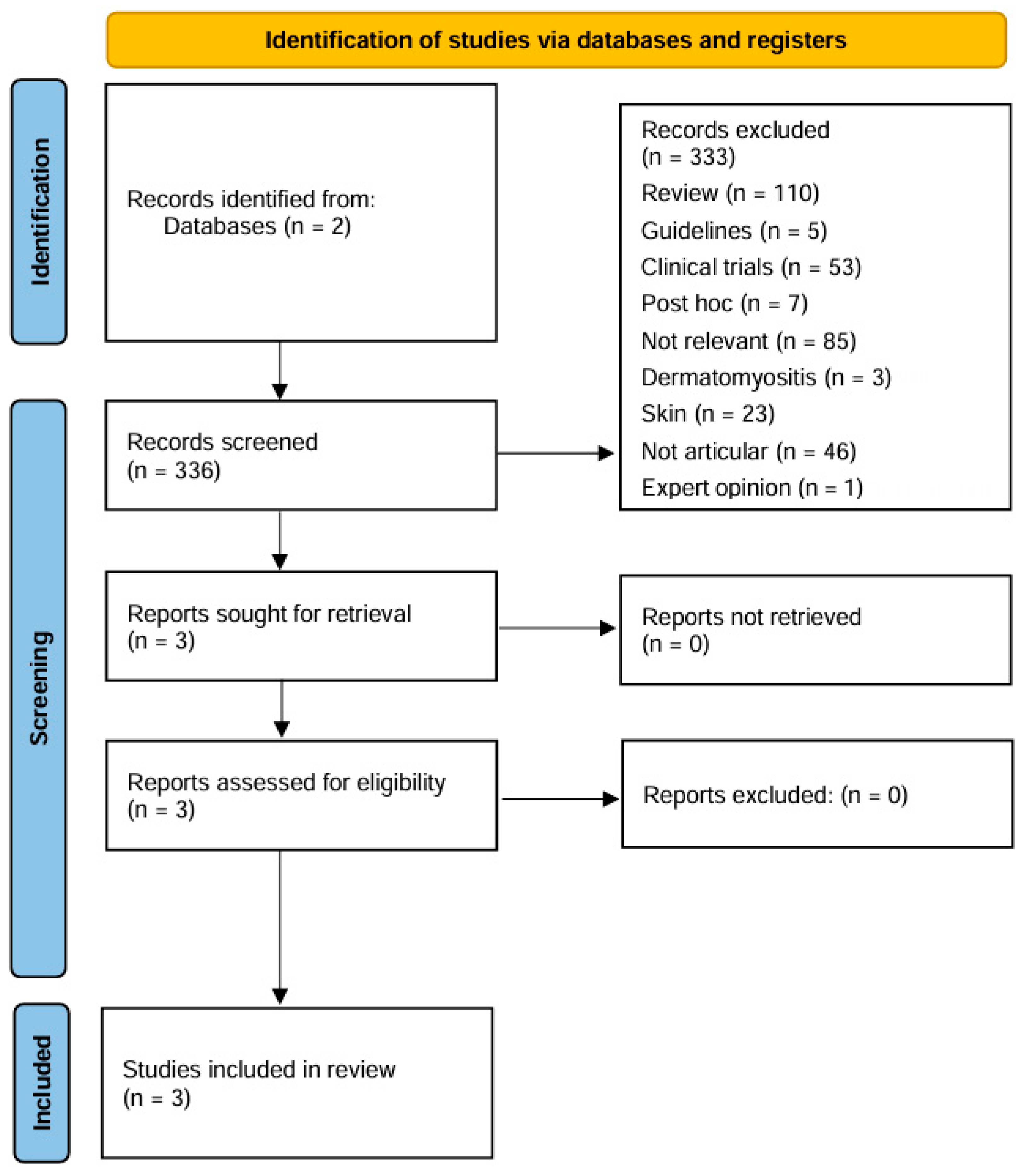 | Ceccarelli, 2025 [9] | Case series | 3 patients | Yes | Reduction in DAS 28, US synovitis score, and US PD score in all patients | HCQ (3 pts), MTX (2 pts), PDN 10 mg/daily (3 pts) |