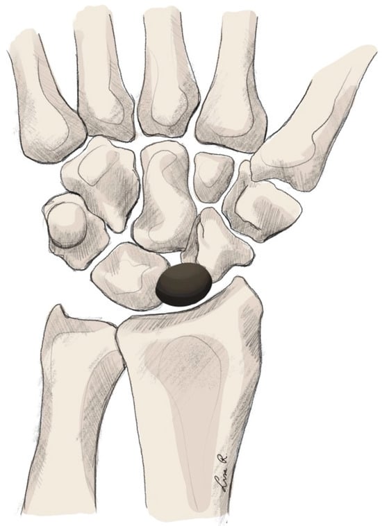 Joint osteoarthritis is a widespread healthcare problem. It is estimated that 13% of the global population is affected by osteoarthritis. In the population aged greater than 65 years, this number increases to 80–90% []. Much variance exists in the reported incidence of hand and wrist osteoarthritis. However, the most recent global burden of disease study shows an increase in hand and wrist osteoarthritis over the last decades [,]. Trapeziometacarpal arthritis, scaphotrapeziotrapezoid (STT) arthritis, proximal carpal row arthritis, and radioscapholunate (RSL) arthritis are some of the more common types of carpal osteoarthritis [,,]. Moreover, traumatic injuries of the carpal bones may lead to complex biomechanical changes in the carpal region like scapholunate advanced collapse (SLAC) or scaphoid nonunion advanced collapse (SNAC) [,].