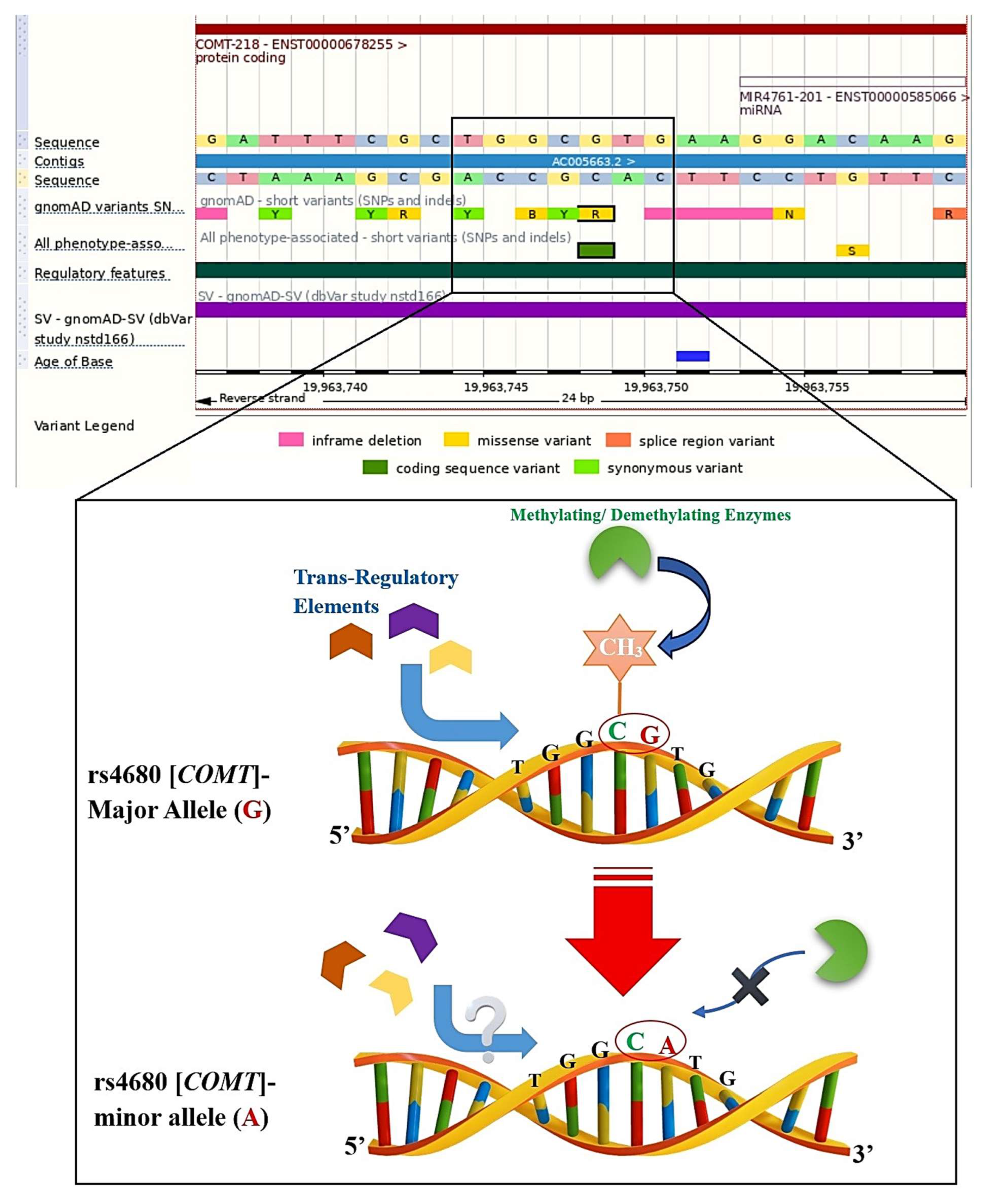 https://www.ensembl.org/index.html), such as Epigenetically Modifiable Accessible Region (EMAR), Promoter, Enhancers, and CTCF Binding Sites (CBS). Thus, these regions were automatically displayed by zooming the sequential viewer. To determine any newly found CpG-PGx SNP based on our hypothesis-generating approach, we investigated genes that had no significant PGx annotation in the GWAS catalog (access date: 1 July 2025,