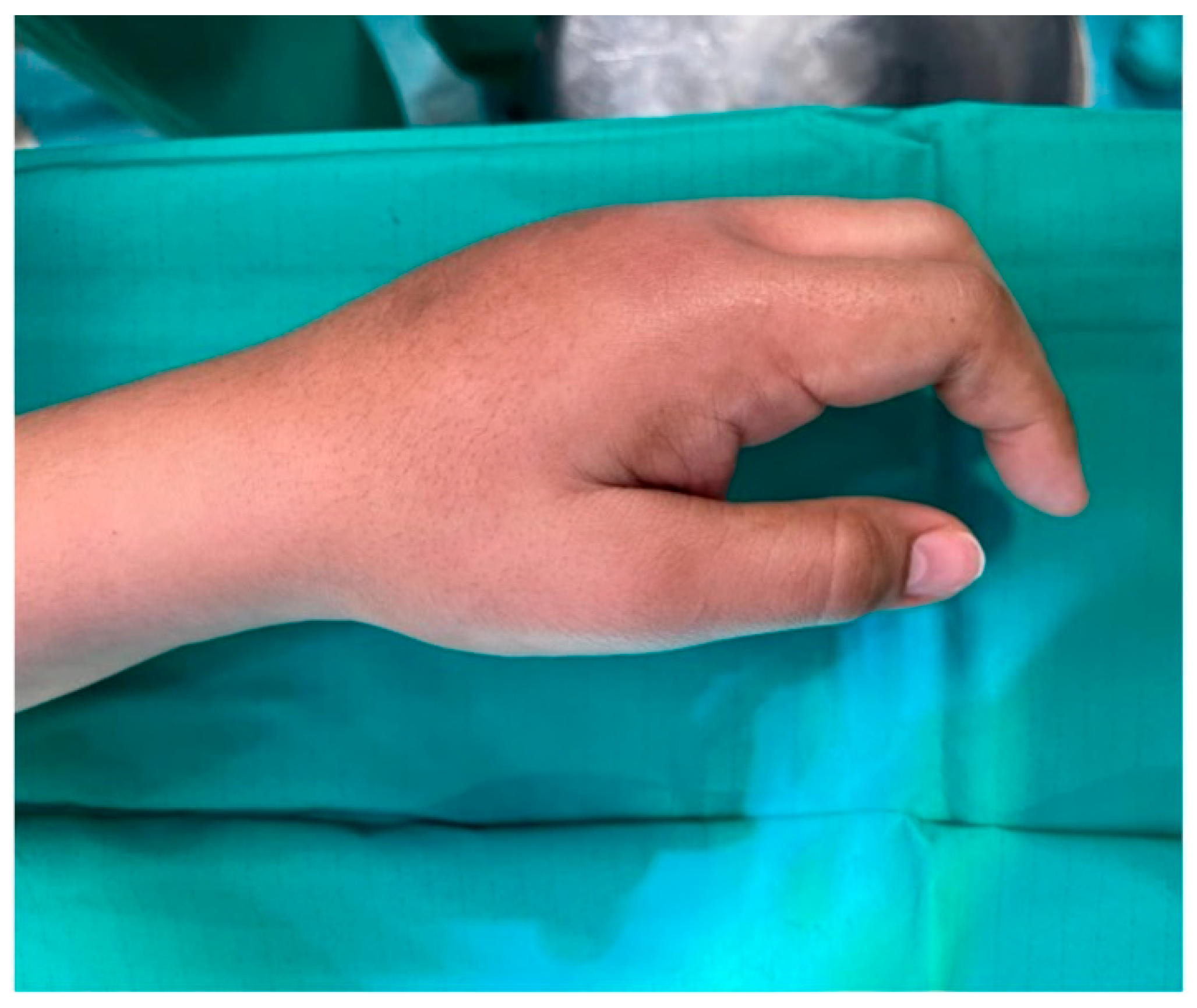 APA StyleCruciani, A., Gerace, E., Vavalle, G., Di Dio, E., Pietramala, S., & Rocchi, L. (2025). Secretan’s Syndrome of the Hand: Literature Review and Surgical Case Report of a Rarely Documented Condition. Journal of Personalized Medicine, 15(12), 586. https://doi.org/10.3390/jpm15120586