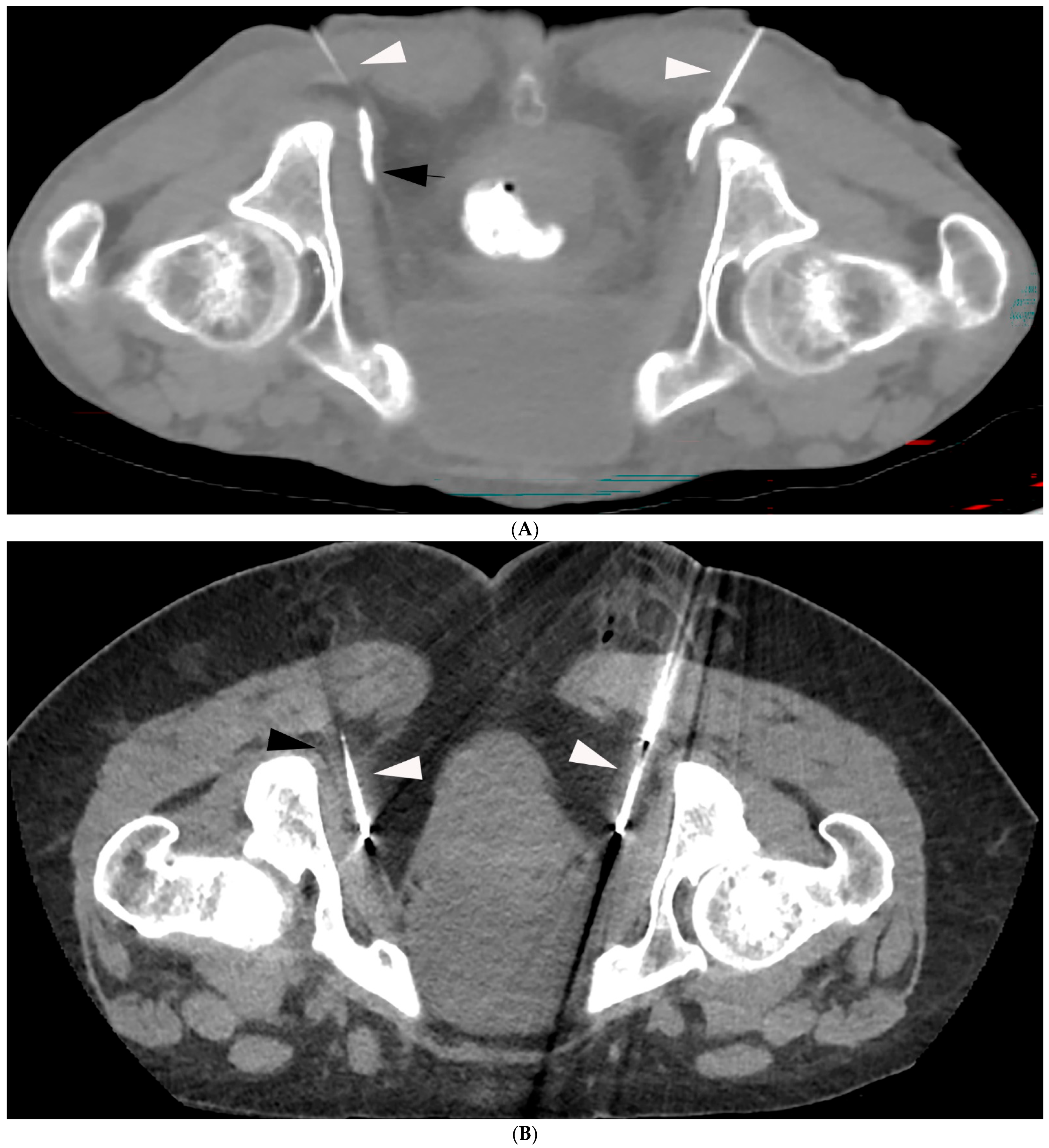 - Collard, M.D.; Xi, Y.; Patel, A.A.; Scott, K.M.; Jones, S.; Chhabra, A. Initial experience of CT-guided pulsed radiofrequency ablation of the pudendal nerve for chronic recalcitrant pelvic pain. Clin. Radiol. 2019, 74, 897. [Google Scholar] [CrossRef]