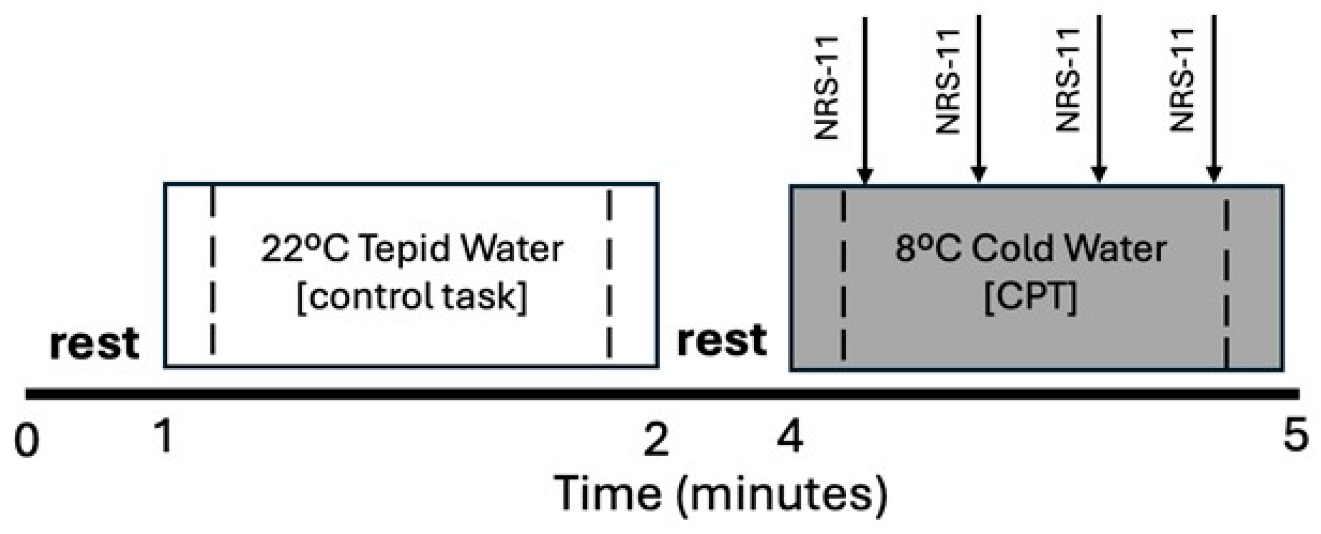 - Lapotka, M.; Ruz, M.; Salamanca Ballesteros, A.; Ocon Hernandez, O. Cold pressor gel test: A safe alternative to the cold pressor test in fMRI. Magn. Reson. Med. 2017, 78, 1464–1468. [Google Scholar] [CrossRef]