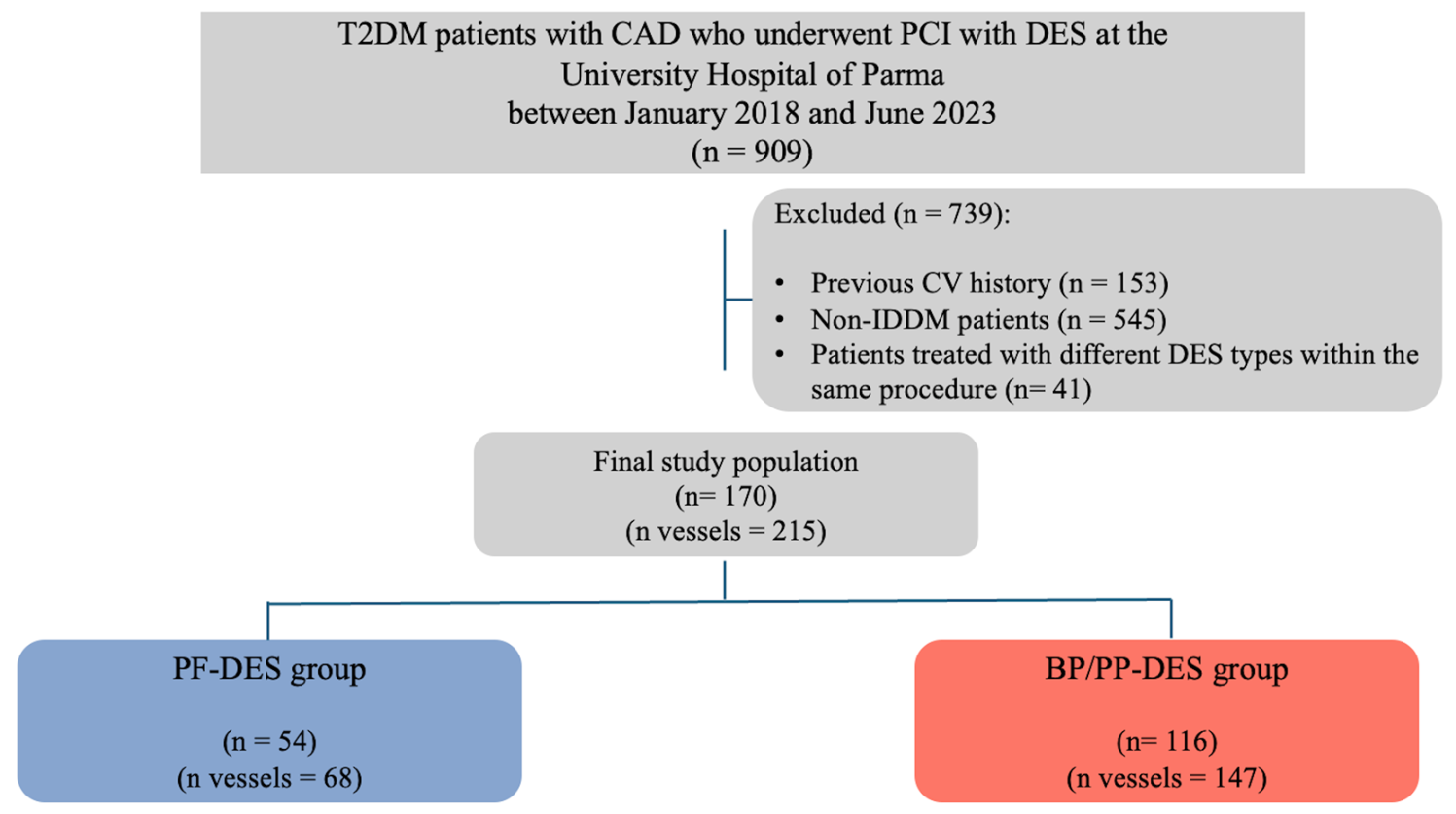 | Characteristics | Overall Population (n = 170) | PF-DES Group (n = 54) | BP/PP-DES Group (n = 116) | p Value |