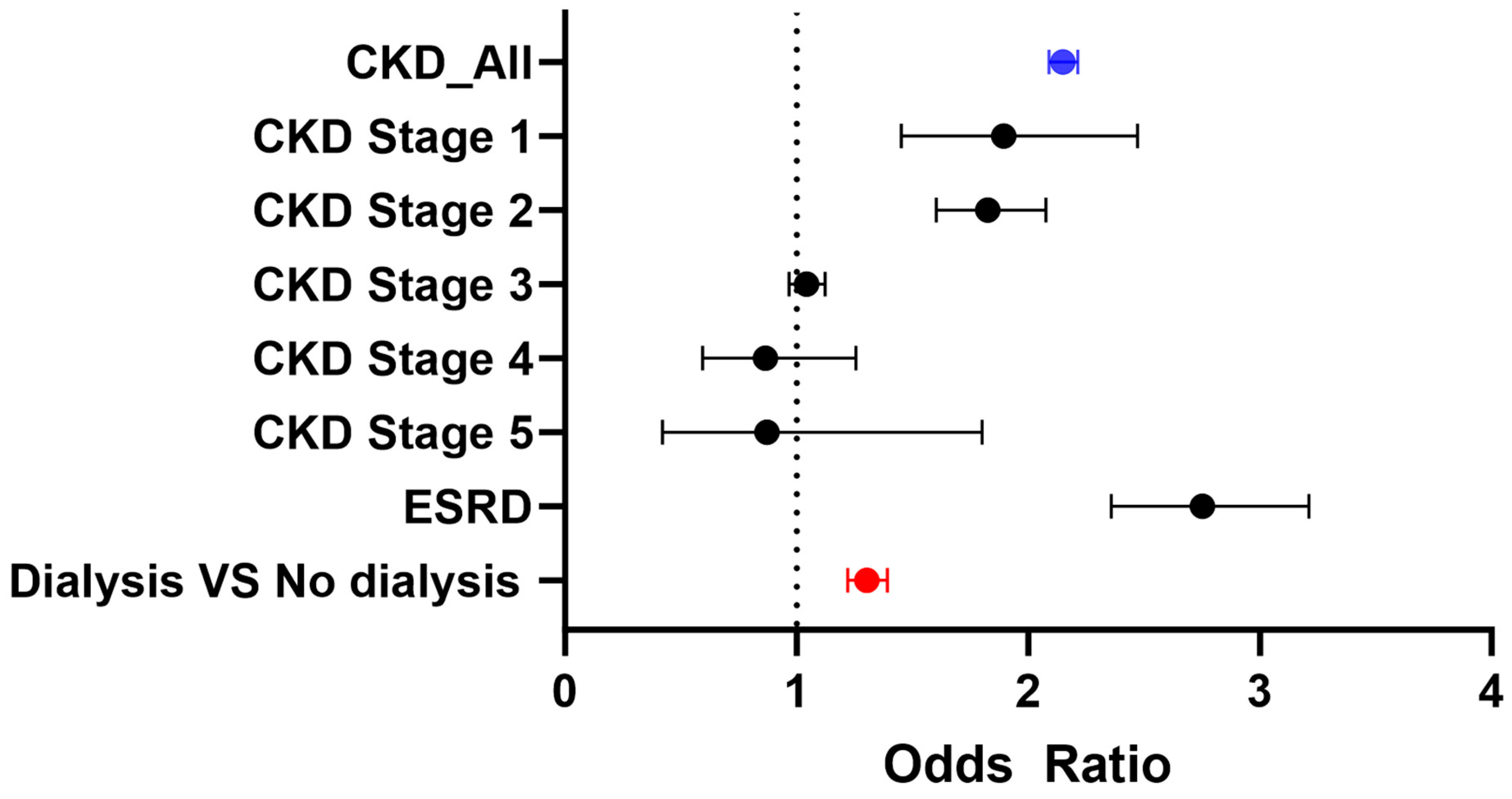 | CKD stage 5 | 308 | 2.11% | <0.01 | 3.791 (3.381–4.250) | <0.01 |