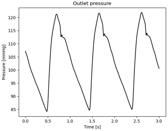 At the descending aorta outlet, a time-varying reduced pressure profile was applied, coupled with a zero-gradient velocity condition. Here are reported the boundary conditions in their mathematical formulation: