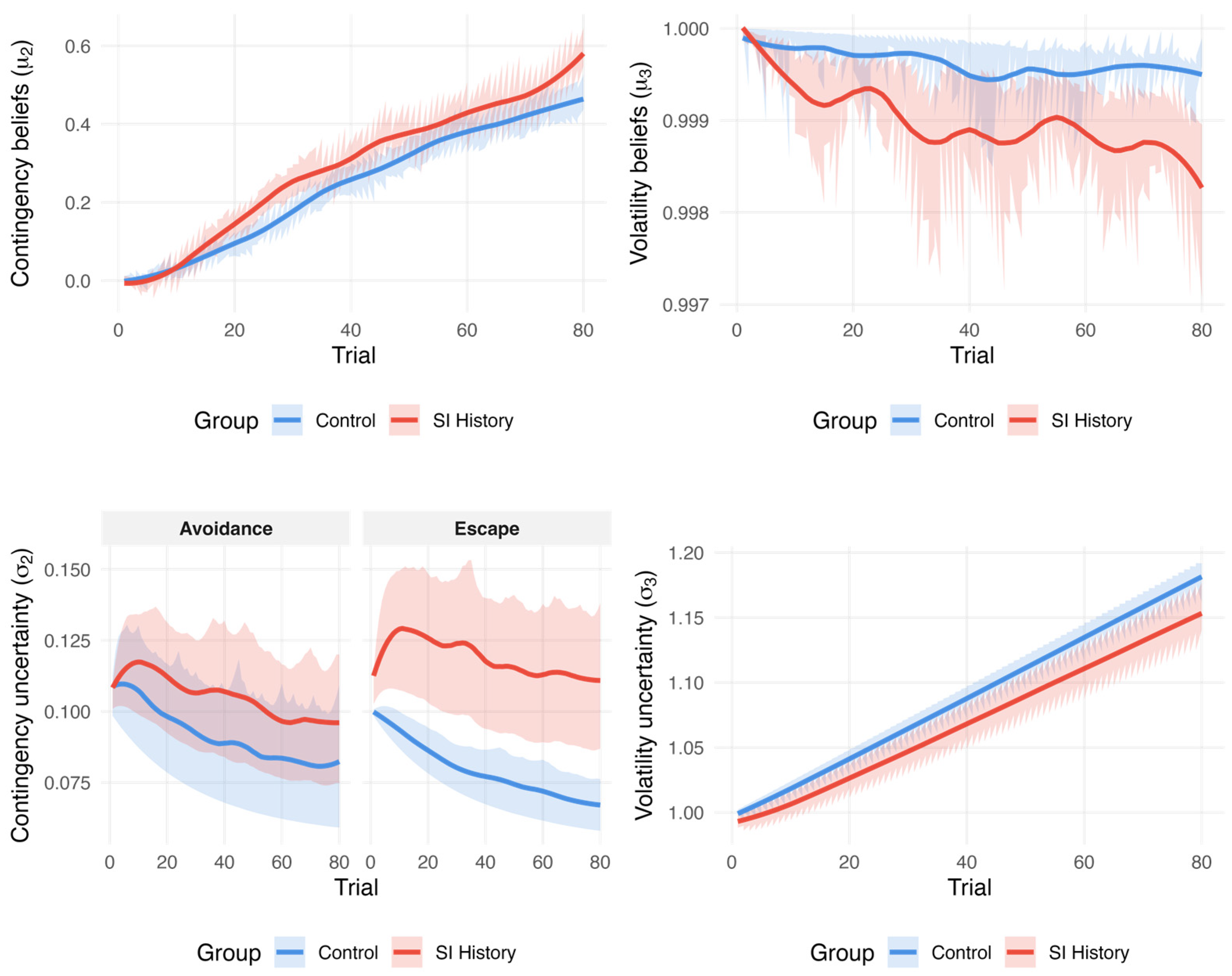 Computational Modeling of Uncertainty and Volatility Beliefs in Escape-Avoidance Learning: Comparing Individuals with and Without Suicidal Ideation