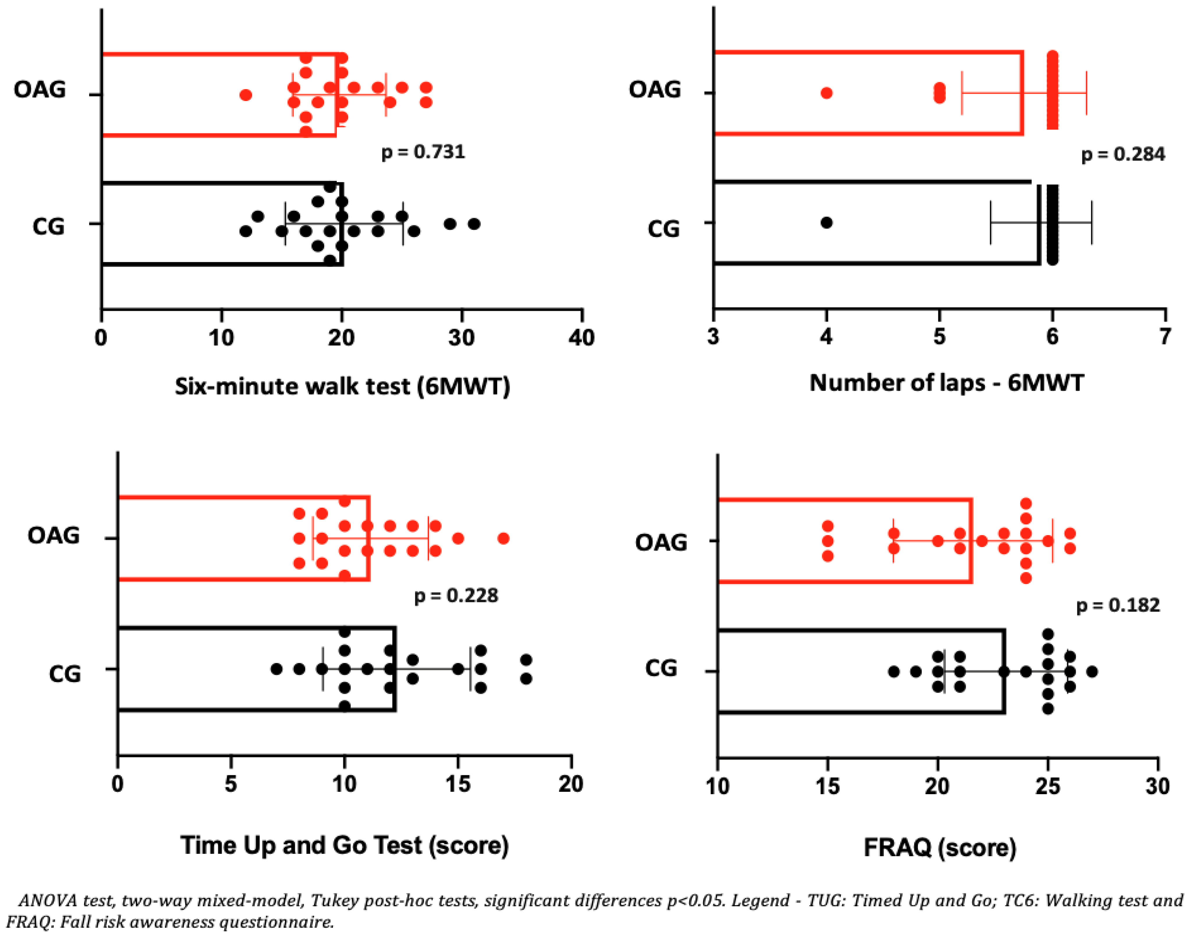 | Variables | OAG (n = 20) | CG (n = 20) | ||||