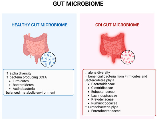 Dysbiosis of the gut microbiota is involved in the pathogenesis of various diseases, and the case of CDI is the best-studied example. Patients with CDI have been found to have significant differences in their gut microbiota compared to healthy individuals. The two main populations of the gut microbiota, Firmicutes and Bacteroidetes, are reduced, and there is an increase in Proteobacteria, which include several harmful bacteria [3,4].