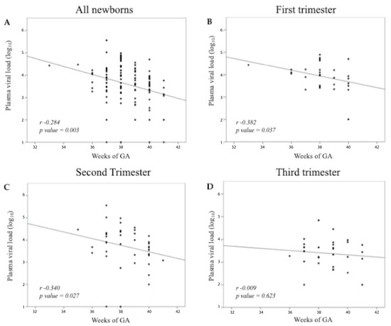 3.2. Plasma Viral Load in Relation to Gestational Age at Birth