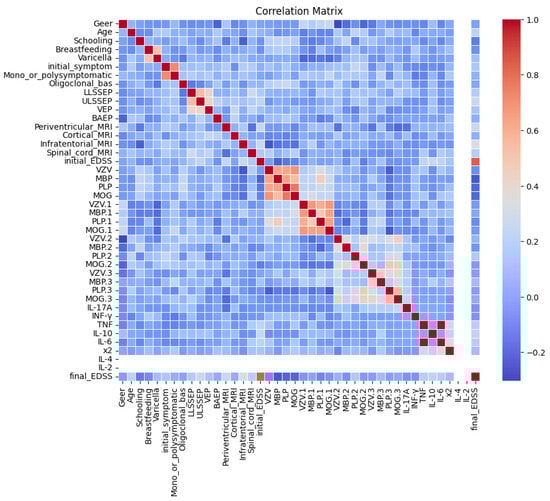 Furthermore, the dataset includes MRI findings, which are central to MS diagnosis and prognosis. Specific MRI features such as periventricular, cortical, infratentorial, and spinal cord lesions are recorded as binary indicators (positive or negative). Neurological disability is quantified with the Expanded Disability Status Scale (EDSS), and both the initial and final EDSS scores are taken into account to measure disease progression.