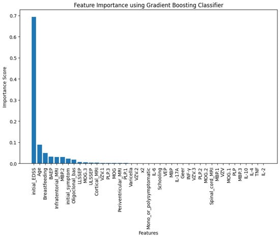 The inclusion of a feature importance plot (Figure 2) in this study offers critical insights into the contribution of each variable to the prediction of Multiple Sclerosis. By leveraging the Gradient-Boosting Classifier [], the analysis effectively identifies the most influential features, enabling a better understanding of the factors driving model predictions.