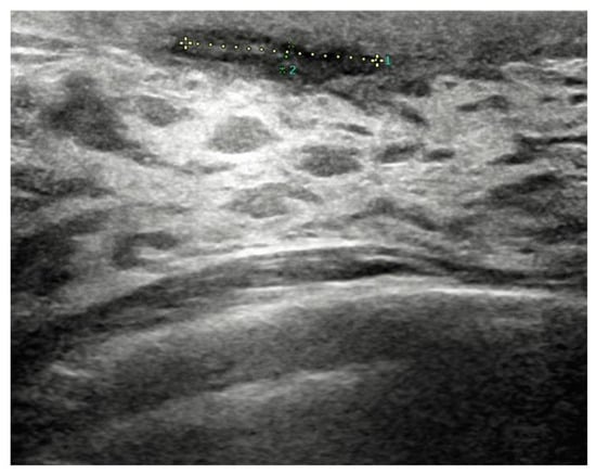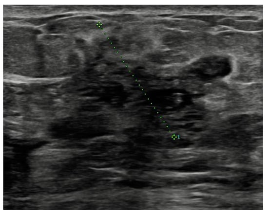 Figure 4), visible on breast ultrasound; five patients showed signs of a past abscess with negative preoperative ultrasound findings, and among them, one had a fistulous tract without purulent discharge (