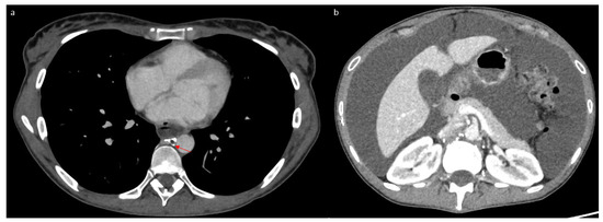 Surgical management may also be considered for the treatment of CCLAs, particularly in cases for which conservative treatment fails. Thoracic duct ligation, an alternative to embolization, can be used to prevent chyle leakage into the pleural or peritoneal spaces. Lympho-venous anastomosis has been proposed as a promising approach aimed at restoring functional lymphatic drainage into the bloodstream, but has mostly been performed at the cervical level for thoracic duct outlet stenosis or obstruction [12,36,37,38,39,40,41,42,43,44,45,46,47,48]. In the case of a mediastinal obstruction, as in the case presented here, lympho-venous anastomosis should be performed at a different site. Peritoneovenous shunting can also be used in certain cases to redirect chyle into the systemic circulation via an intra-abdominal pathway [2,4]. However, given the low prevalence of the disease, no guidelines currently define the role of the various treatment options, and further investigations are needed.