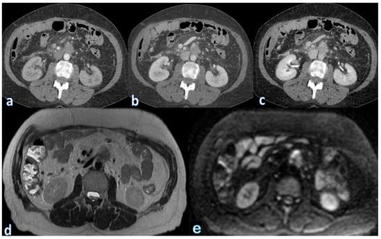 - Sun, H.; Zuo, H.-D.; Lin, Q.; Yang, D.-D.; Zhou, T.; Tang, M.-Y.; Wáng, Y.X.J.; Zhang, X.-M. MR imaging for acute pancreatitis: The current status of clinical applications. Ann. Transl. Med. 2019, 7, 269. [Google Scholar] [CrossRef] [PubMed]