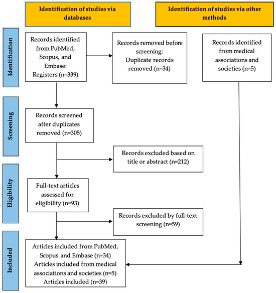 There were finally 39 published studies and society guidelines/recommendations regarding the post-operative usage of drainage in various gynecologic oncology procedures included in the present review. The flowchart of the study selection is presented in Figure 1.