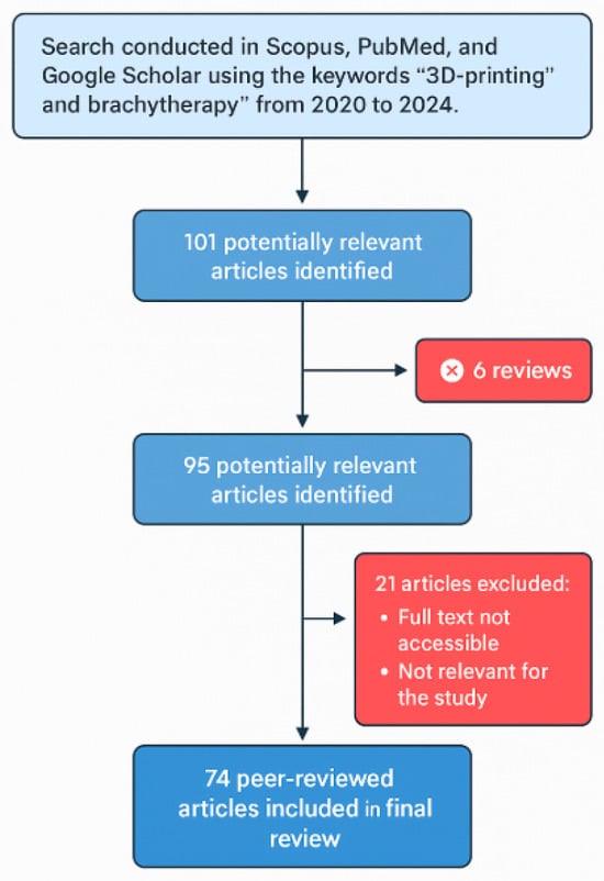 APA StyleRosa, E., Raponi, S., Fionda, B., Vaccaro, M., Lancellotta, V., Napolitano, A., Ciasca, G., Bannoni, L., Cornacchione, P., Tagliaferri, L., De Spirito, M., & Placidi, E. (2025). 3D-Printed Devices in Interventional Radiotherapy (Brachytherapy) Applications: A Literature Review. Journal of Personalized Medicine, 15(6), 262. https://doi.org/10.3390/jpm15060262