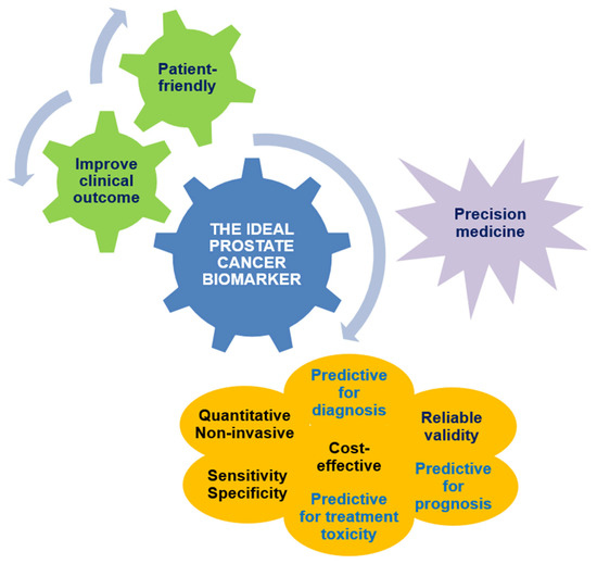 The ideal biomarker characteristics for clinical use in prostate cancer.