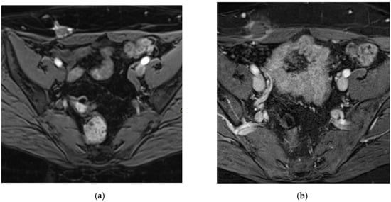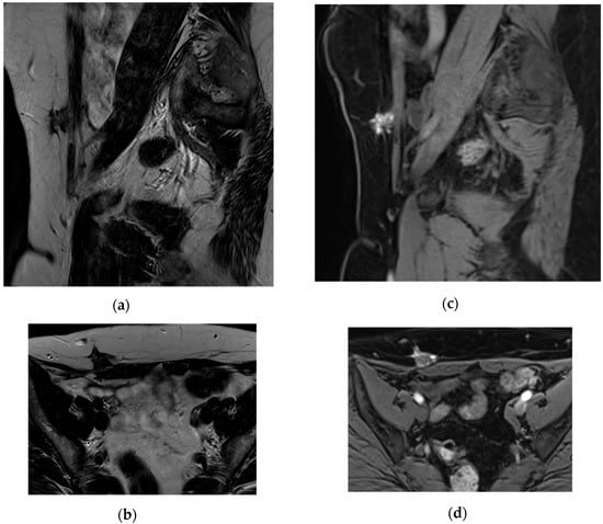 - Radzynski, L.; Boyer, L.; Kossai, M.; Mouraire, A.; Montoriol, P.-F. Pictorial essay: MRI evaluation of endometriosis-associated neoplasms. Insights Imaging 2023, 14, 144. [Google Scholar] [CrossRef] [PubMed]
