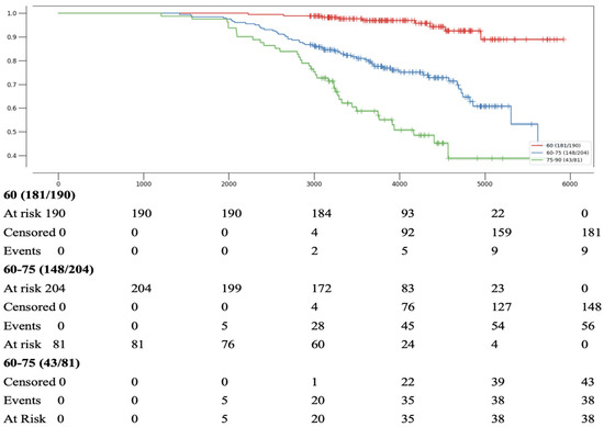 Kaplan–Meier Curves for Survival of Patients Depending on Age.