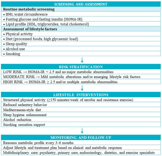 - Khayachi, A.; Nunes, A.; Alda, M.; Rouleau, G.A. The overlooked role of metabolic disorders in bipolar disorder. Neurosci. Biobehav. Rev. 2025, 174, 106203. [Google Scholar] [CrossRef]