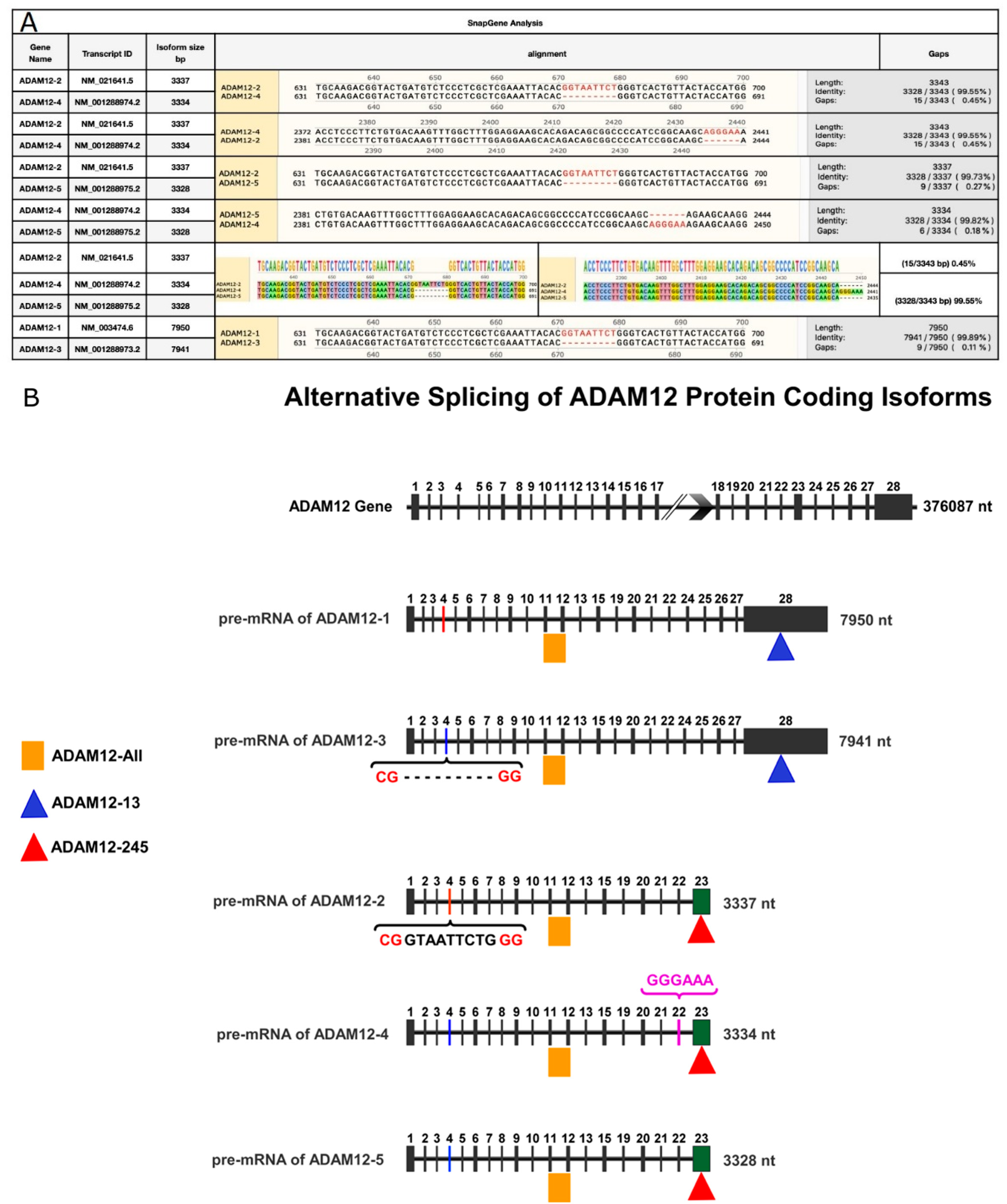 - Althenayyan, S.; AlMuhanna, M.H.; AlAbdulrahman, A.; Alghanem, B.; Alsagaby, S.A.; Alfahed, A.; Alasiri, G.; Aziz, M.A. Alternatively Spliced Isoforms of MUC4 and ADAM12 as Biomarkers for Colorectal Cancer Metastasis. J. Pers. Med. 2023, 13, 135. [Google Scholar] [CrossRef] [PubMed]