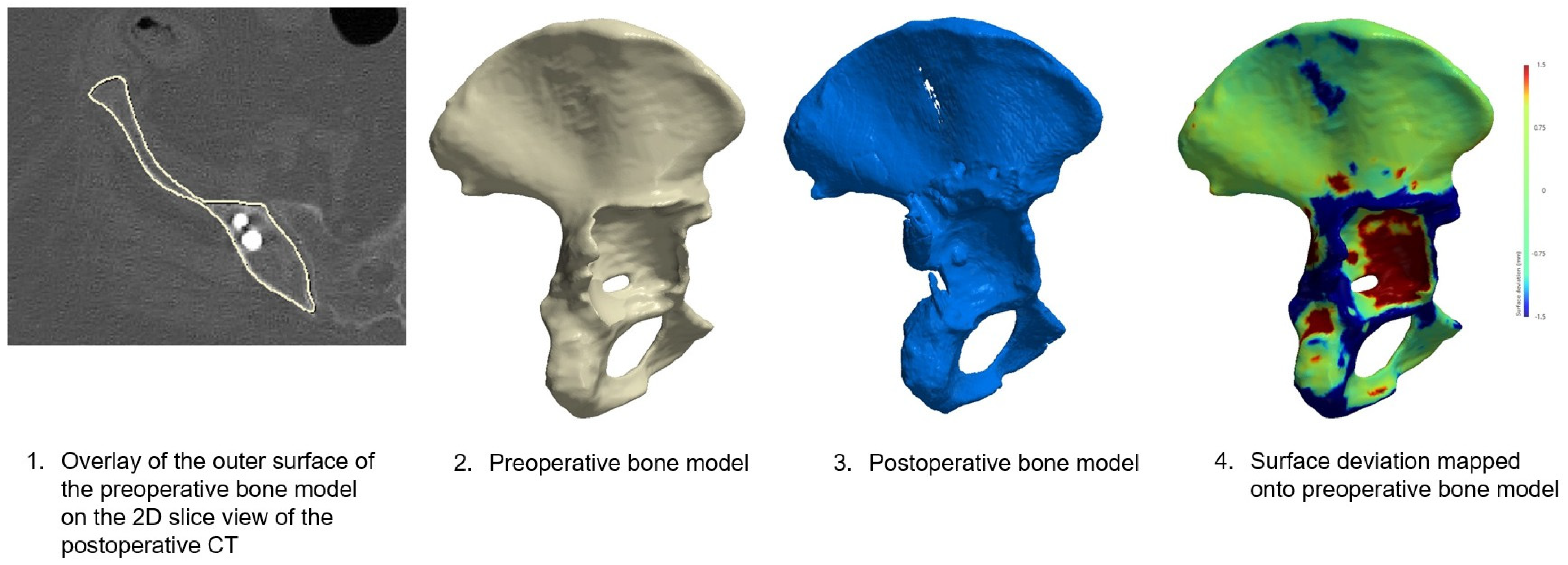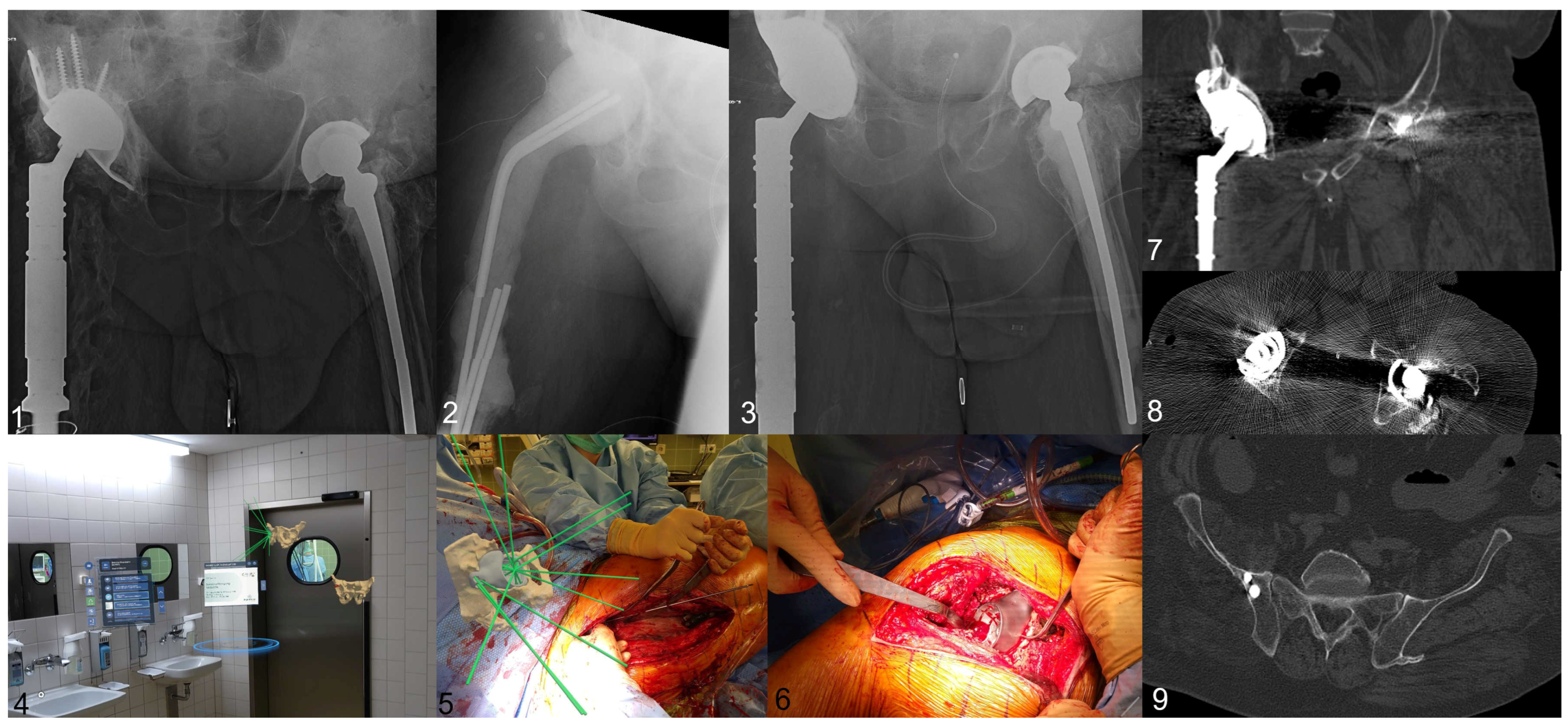 - Wessling, M.; Jaenisch, M.; Hanusrichter, Y.; Wirtz, D.C.; Gebert, C.; Randau, T.M. Customized partial pelvis replacement: Three-dimensional planning and management concepts. Oper. Orthop. Traumatol. 2023, 35, 278–297. [Google Scholar] [CrossRef]