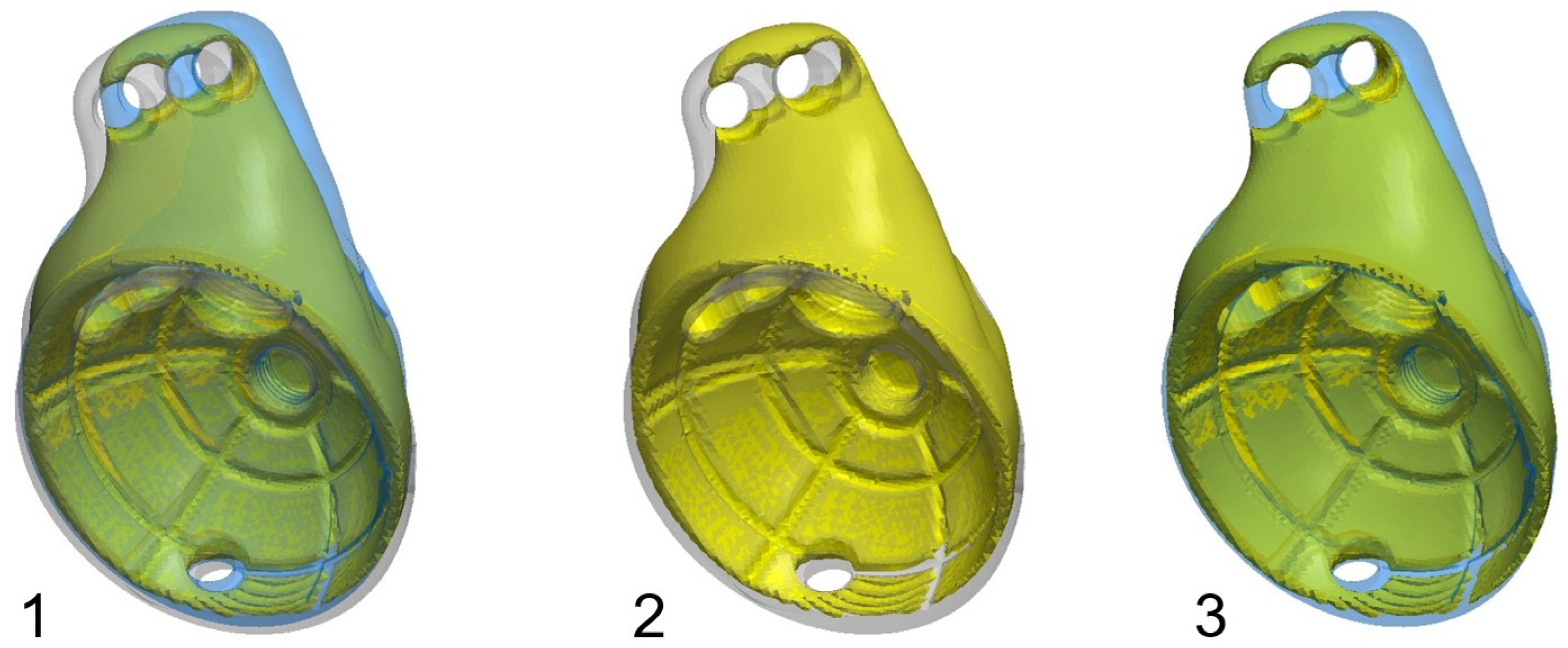 - Myncke, I.; van Schaik, D.; Scheerlinck, T. Custom-made triflanged acetabular components in the treatment of major acetabular defects. Short-term results and clinical experience. Acta Orthop. Belg. 2017, 83, 341–350. [Google Scholar]