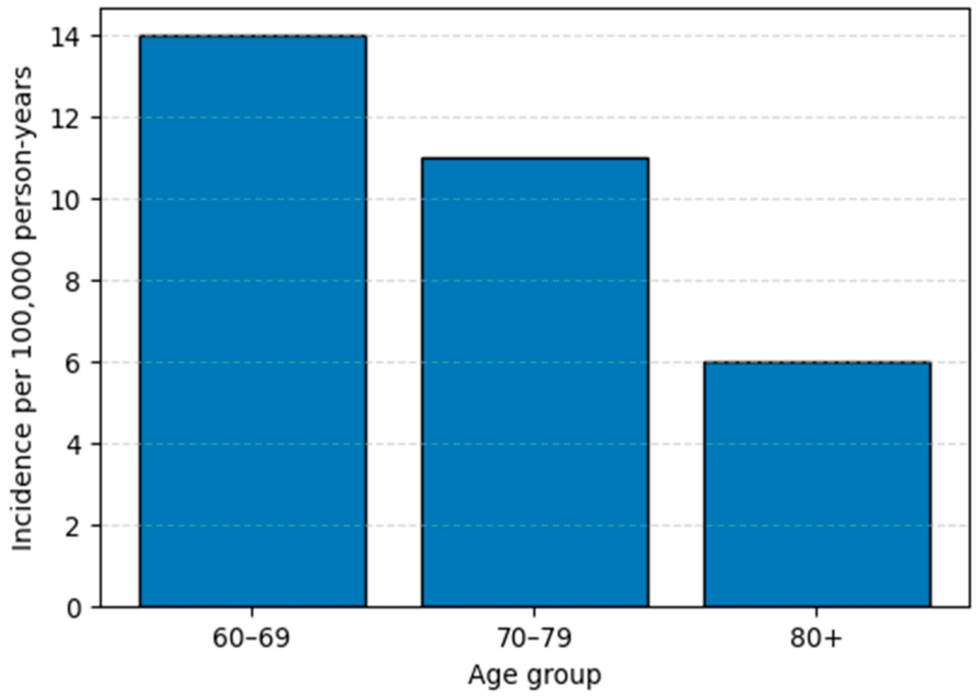 - Singh, S.; Poulsen, G.J.; Bisgaard, T.H.; Bonfils, L.; Jess, T. Epidemiology of Elderly Onset IBD: A Nationwide Population-Based Cohort Study. Clin. Gastroenterol. Hepatol. 2025, 23, 1204–1215.e11. [Google Scholar] [CrossRef] [PubMed] [PubMed Central]