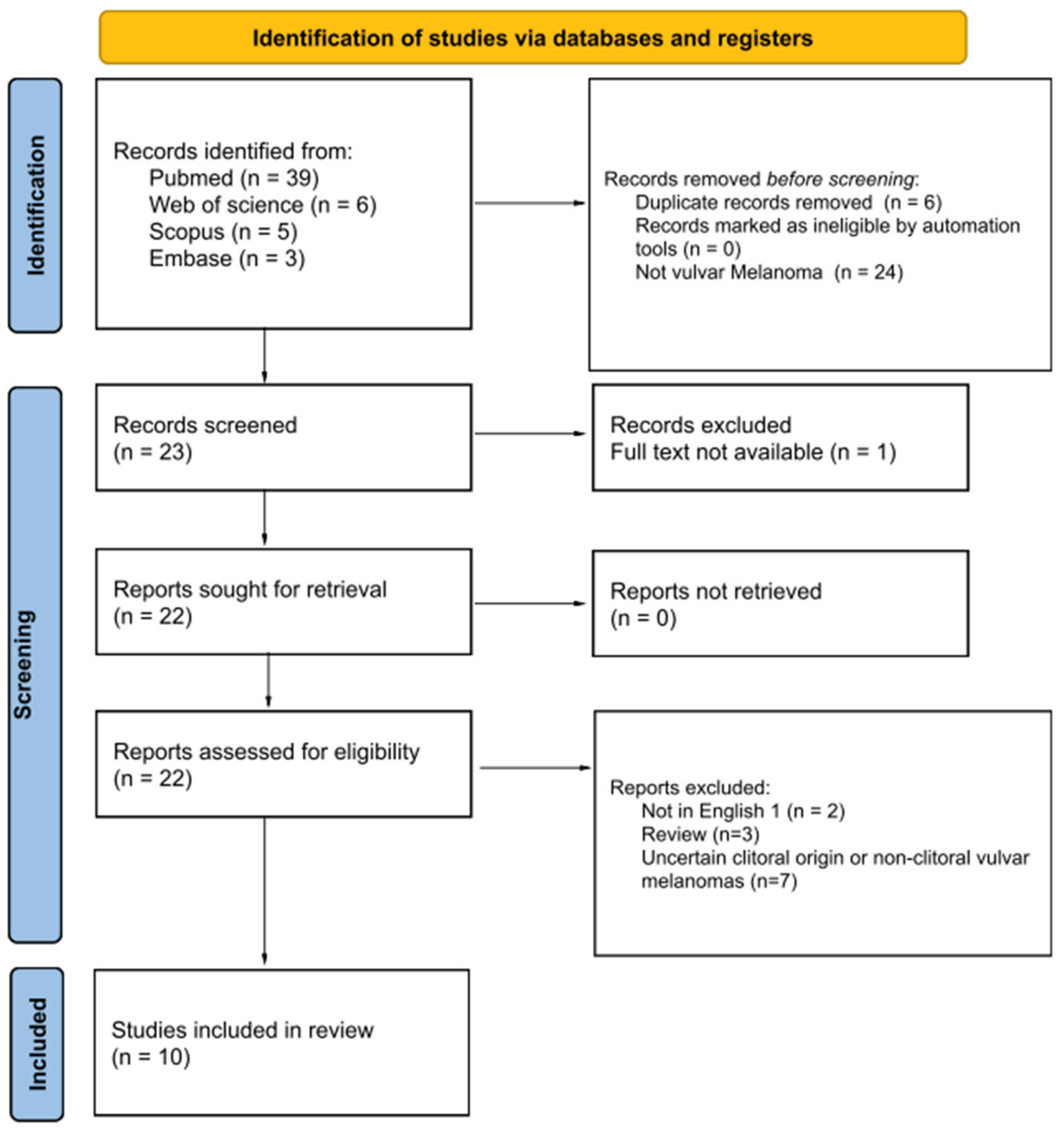Chicago/Turabian StylePitsillidi, Anna, Laura Vona, Guglielmo Stabile, and Günter Noé. 2026. "Primary Clitoral Melanoma: Personalized Therapeutic Strategies Informed by Clinical Evidence and Systematic Review" Journal of Personalized Medicine 16, no. 2: 70. https://doi.org/10.3390/jpm16020070