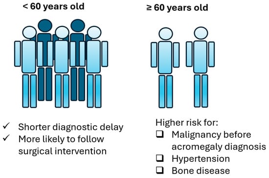 - Ambrosio, M.R.; Gagliardi, I.; Ferreira, A.G.; Bondanelli, M.; Giampietro, A.; Bianchi, A.; De Marinis, L.; Fleseriu, M.; Zatelli, M.C. Acromegaly in the elderly patients. Endocrine 2020, 68, 16–31. [Google Scholar] [CrossRef]