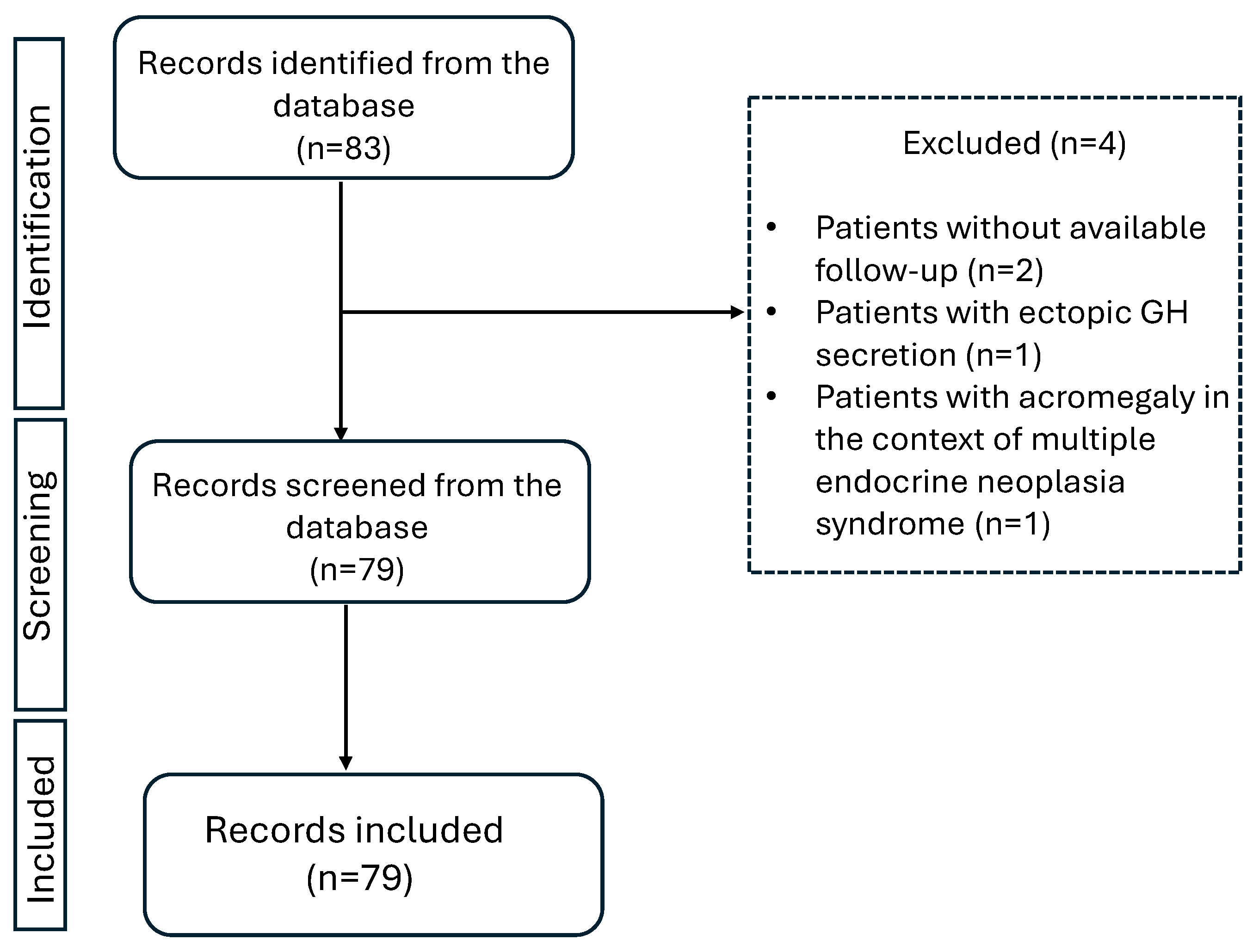 - Slagboom, T.N.; de Jong, D.; Bisschop, P.H.; Drent, M.L. Acromegaly: Is earlier diagnosis possible? Exploration of a screening algorithm to select high-risk patients. Endocr. Metab. Sci. 2025, 17, 100223. [Google Scholar] [CrossRef]