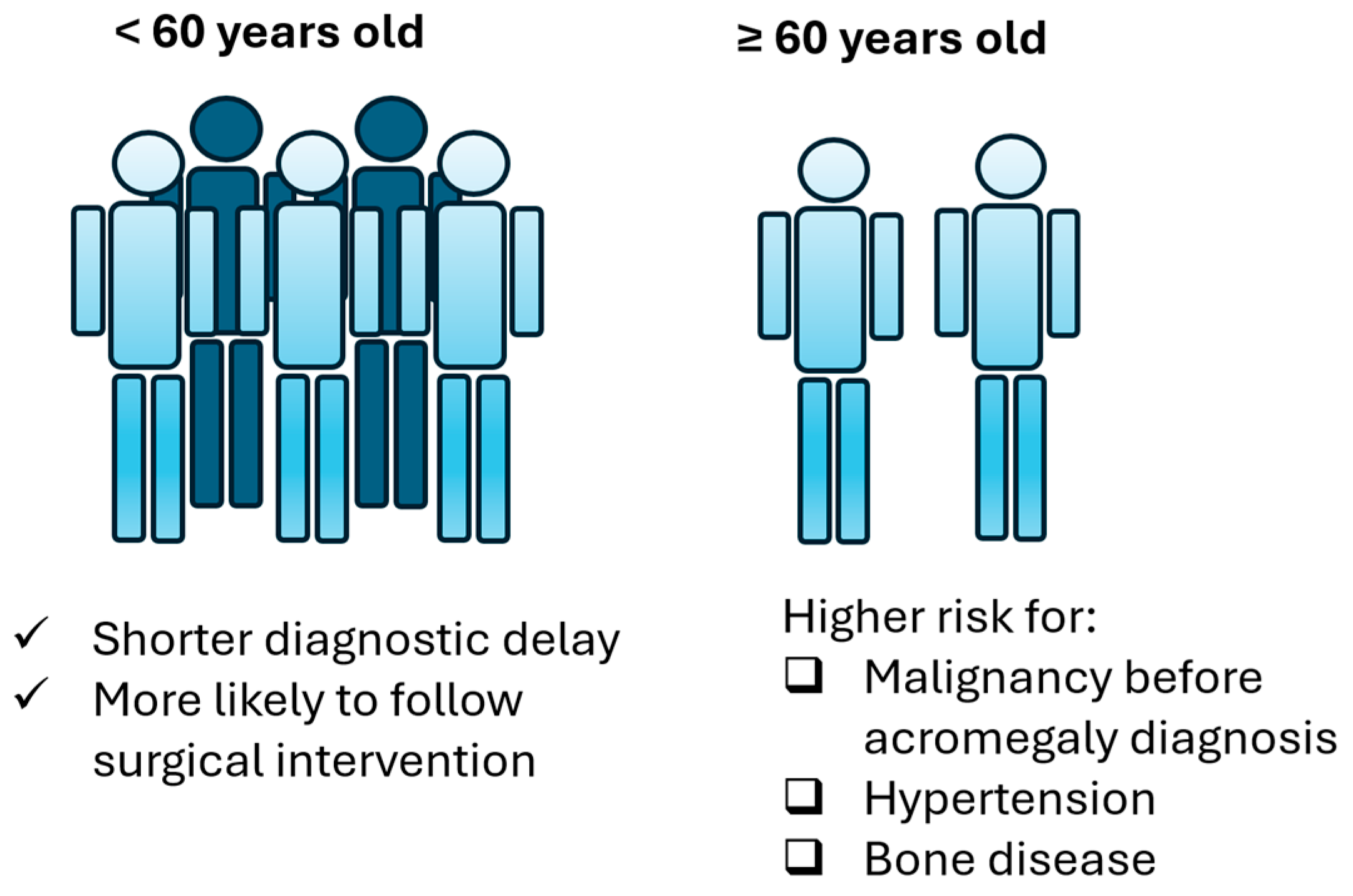 - Biagetti, B.; Iglesias, P.; Villar-Taibo, R.; Moure, M.-D.; Paja, M.; Araujo-Castro, M.; Ares, J.; Álvarez-Escola, C.; Vicente, A.; Guivernau, È.Á. Factors associated with therapeutic response in acromegaly diagnosed in the elderly in Spain. Front. Endocrinol. 2022, 13, 984877. [Google Scholar] [CrossRef]