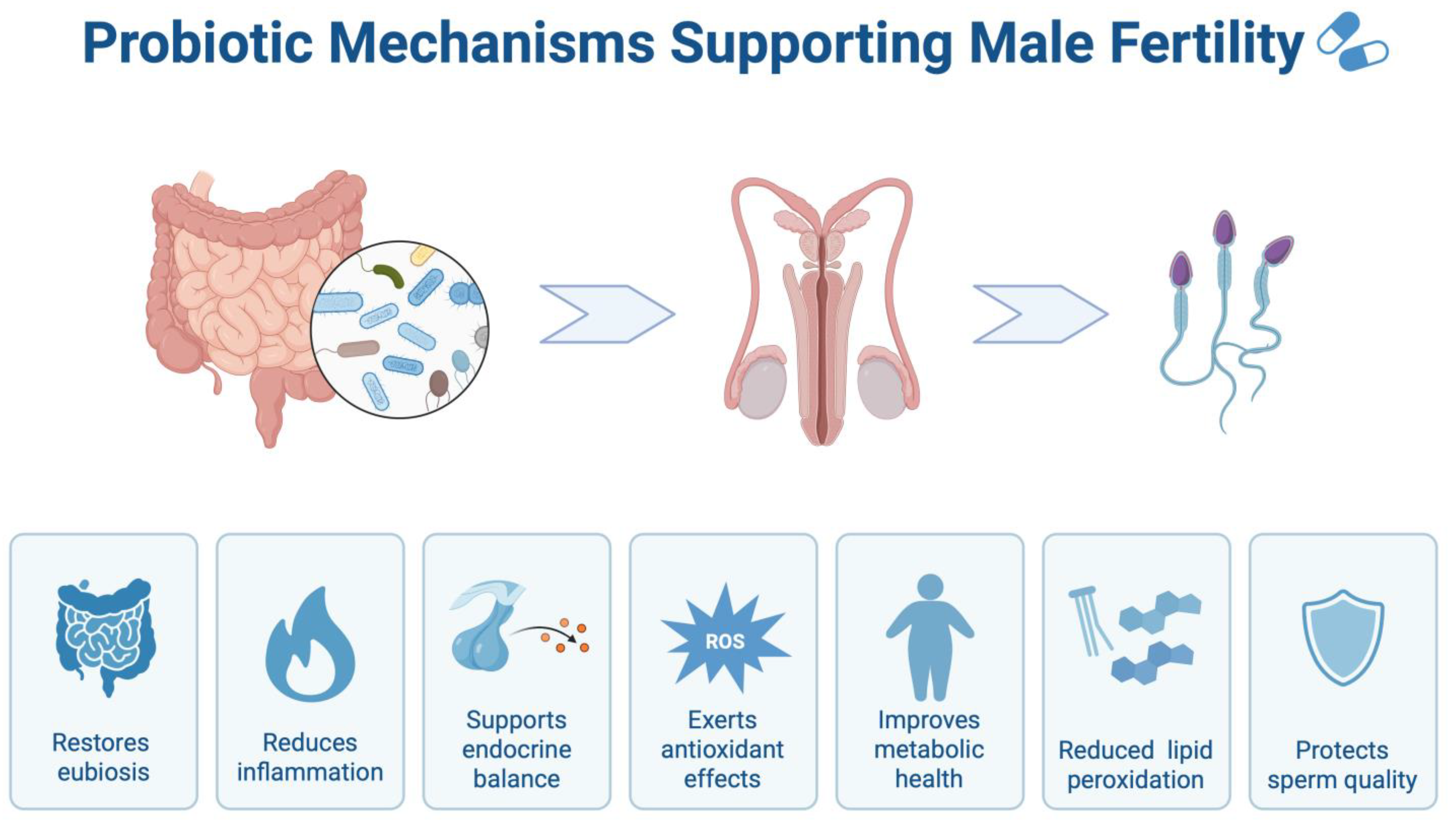 16]. Interventional studies evaluating probiotics and synbiotics have reported improvements in selected semen parameters and oxidative biomarkers in some settings, although findings remain inconsistent [