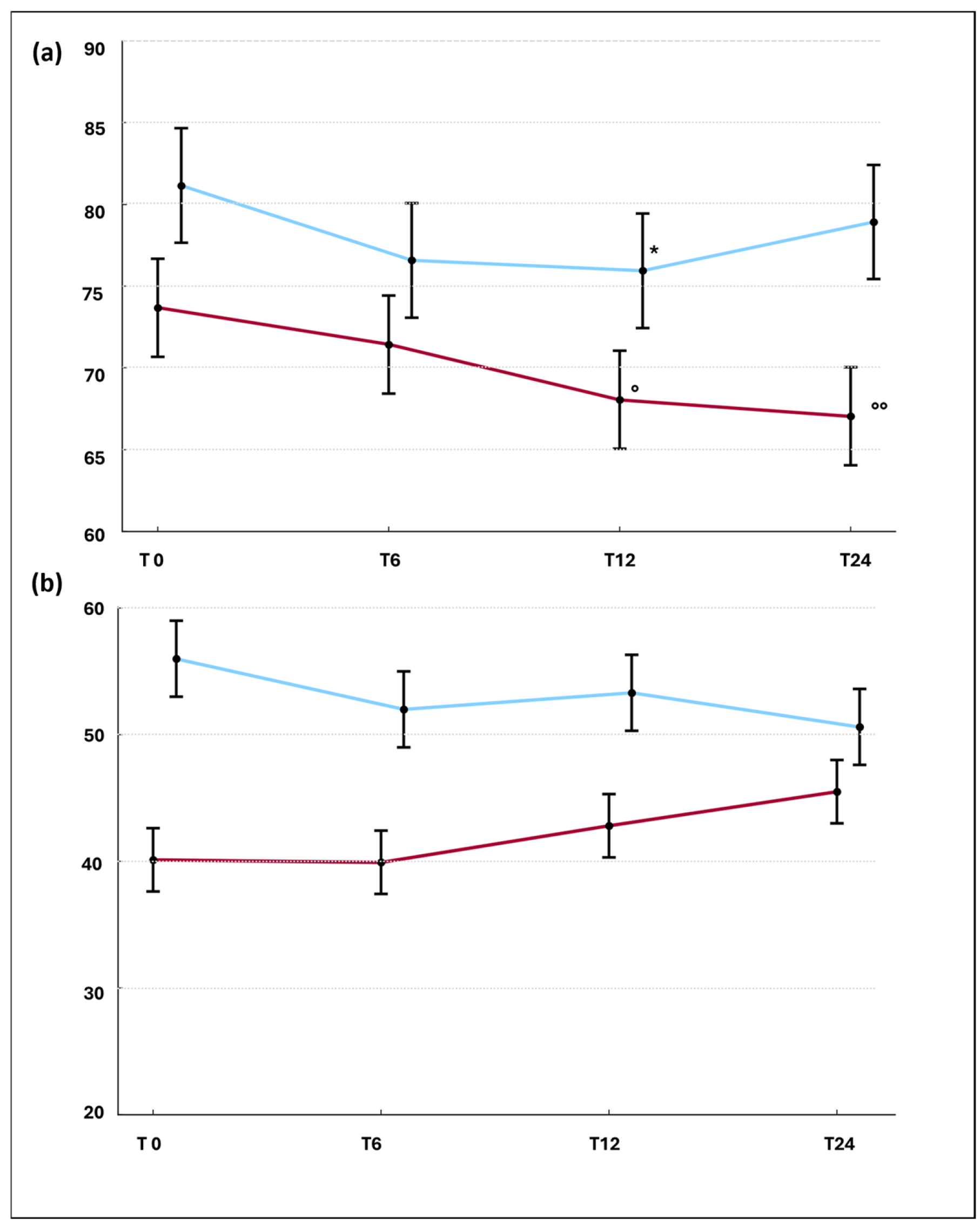 | T6 vs. T0 | T12 vs. T0 | T24 vs. T0 | T12 vs. T6 | T24 vs. T12 | T6 vs. T0 | |||||||