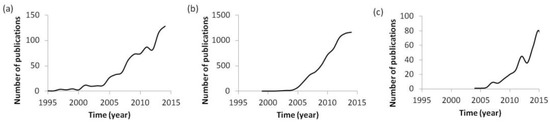 Number of publications per year, indexed in Scopus that contain the term (a) “nanosystem,” (b) “nanomedicine,” and (c) “personalized nanomedicine.”