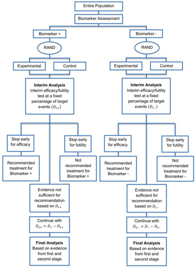 - Freidlin, B.; Korn, E.L. Biomarker enrichment strategies: Matching trial design to biomarker credentials. Nat. Rev. Clin. Oncol. 2014, 11, 81–90. [Google Scholar] [CrossRef] [PubMed]