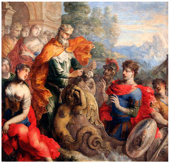 Before leaving the Aeolian island and sailing towards his homeland, Odysseus received a special gift from the god of winds (Figure 4)—a tightly bounded sack. None of his soldiers was aware of its contents, and they became curious, believing that Odysseus was hiding treasures from them.