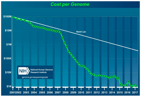 - Institute NHGR. The Cost of Sequencing a Human Genome. 2016. Available online: https://www.genome.gov/27565109/the-cost-of-sequencing-a-human-genome/ (accessed on 31 January 2018).