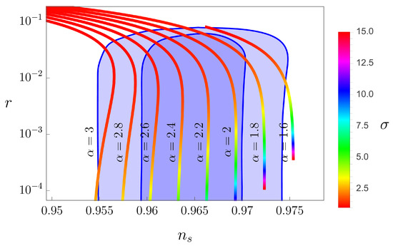 with the reduced Hubble constant, and the momenta associated to the horizon scale at the onset of kination and BBN, and an effective parameter encoding any extra amount of radiation beyond the Standard Model content [87,88]. This bound applies to all sources of primordial gravitational waves and in particular to the specific inflationary background in Equation (25). Taking into account the power law behaviour of this quantity, the integral in Equation (27) can be approximated by its upper end, getting a simpler expression that tends to exclude models with large inflationary scales and extended periods of kination.