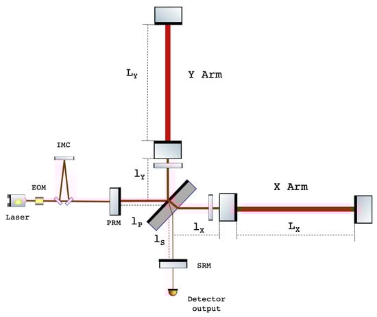If the distance between the beam splitter and the input mirror of the FP cavity along X and Y arms is the same, carrier and sidebands are both on the dark fringe. However, introducing a macroscopic arm length difference of several centimeter equal to an integer number of laser wavelength, called Schnupp asymmetry ( in Figure 1), the sidebands are no longer on the dark fringe, allowing to be transferred through the interferometer to the output port even if the carrier is at the dark fringe.